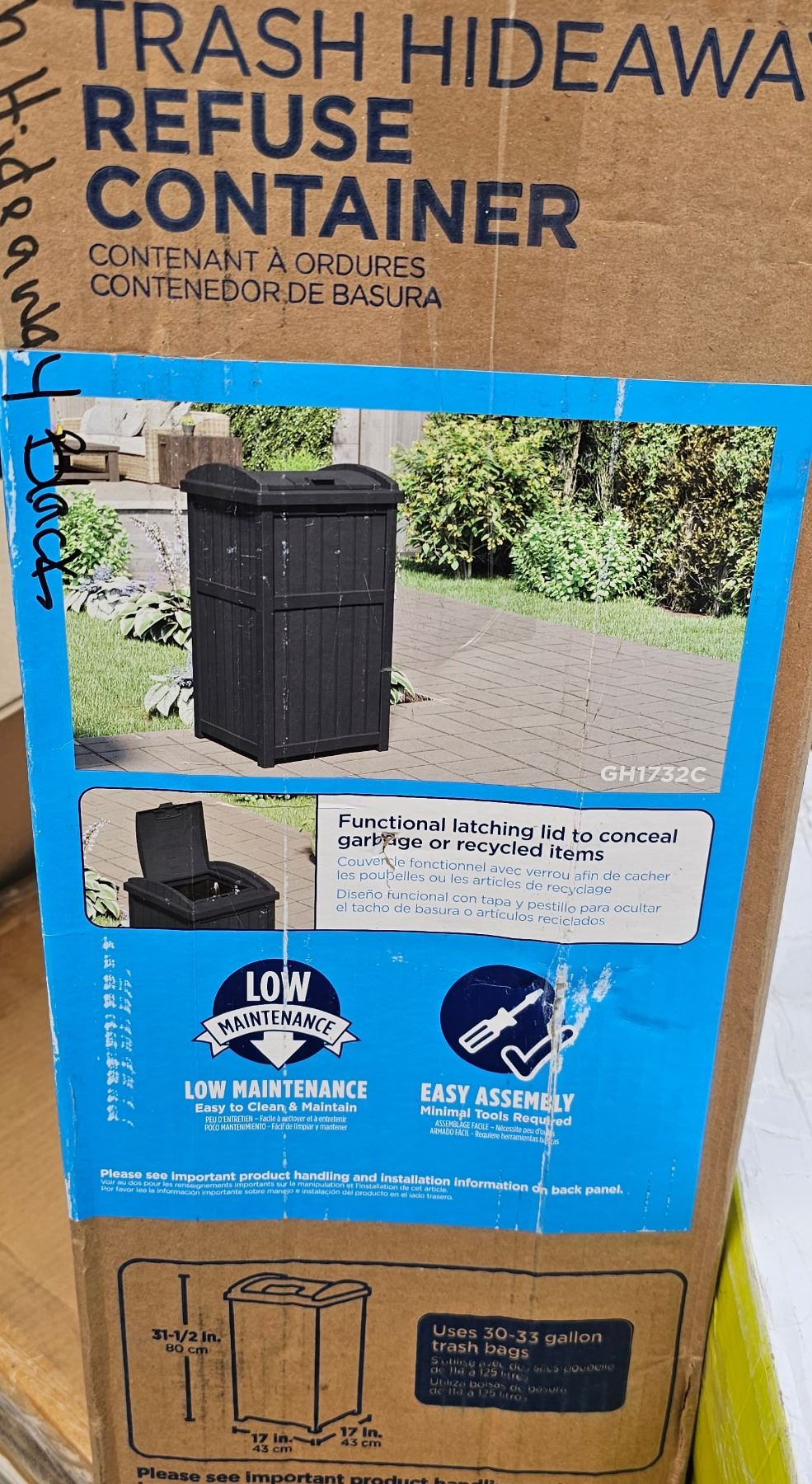 Suncast Trash Hideaway, 33 Gallon Resin Outdoor Garbage Container, Taupe, New Condition