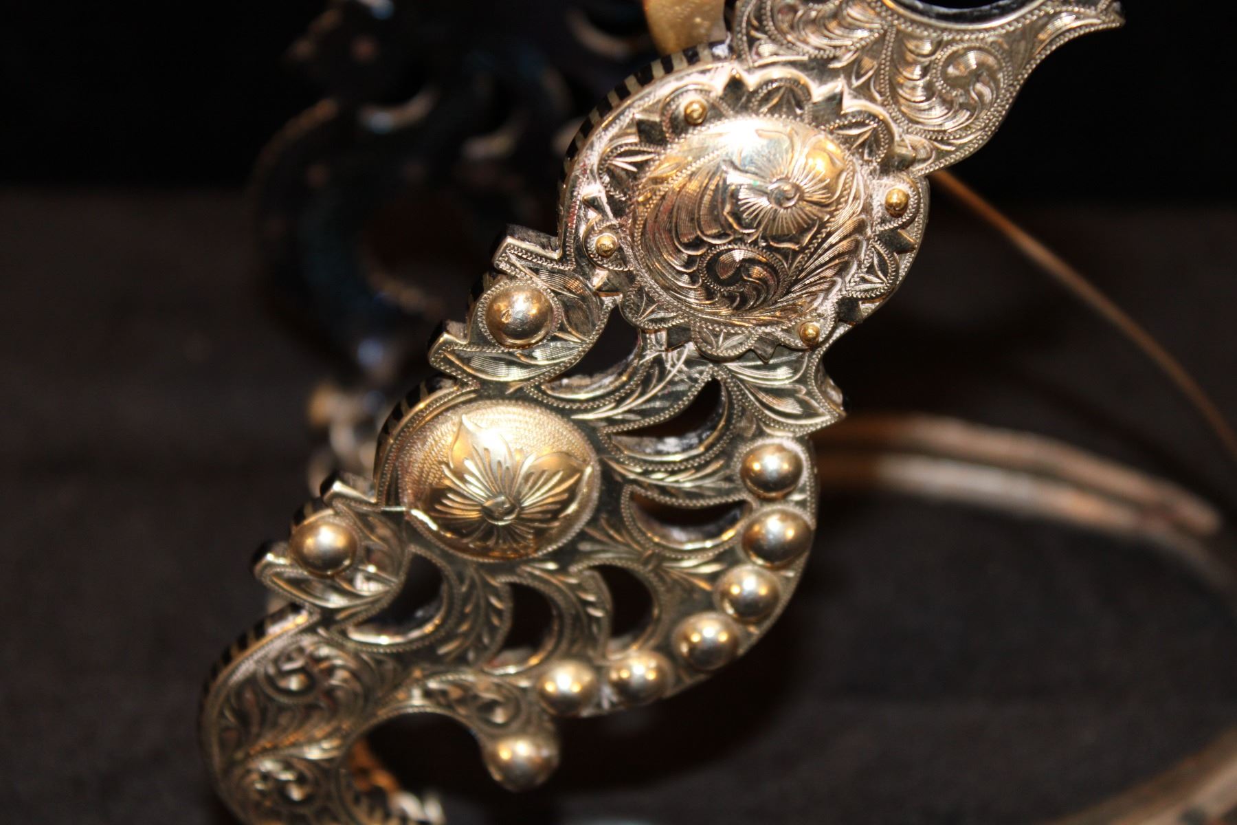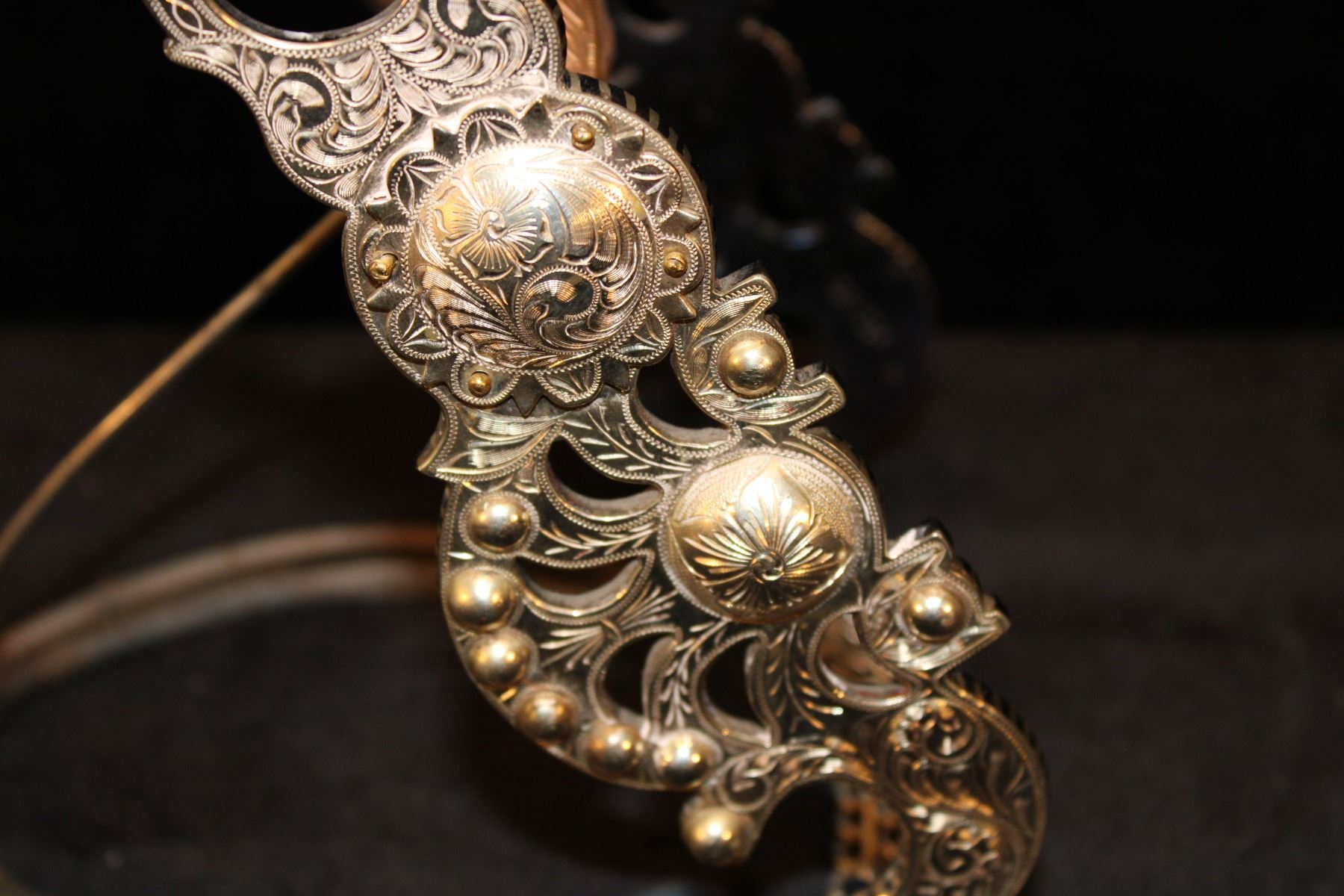 Neat short santa barbara cheek, engraved salinas mouth, 5"x8 1/2"