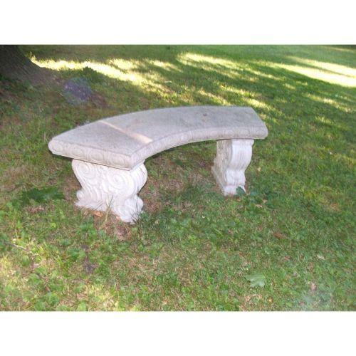 Cast stone. Set of five matching cast benches with carved seats and scrolled bases. 17" high by 52" long