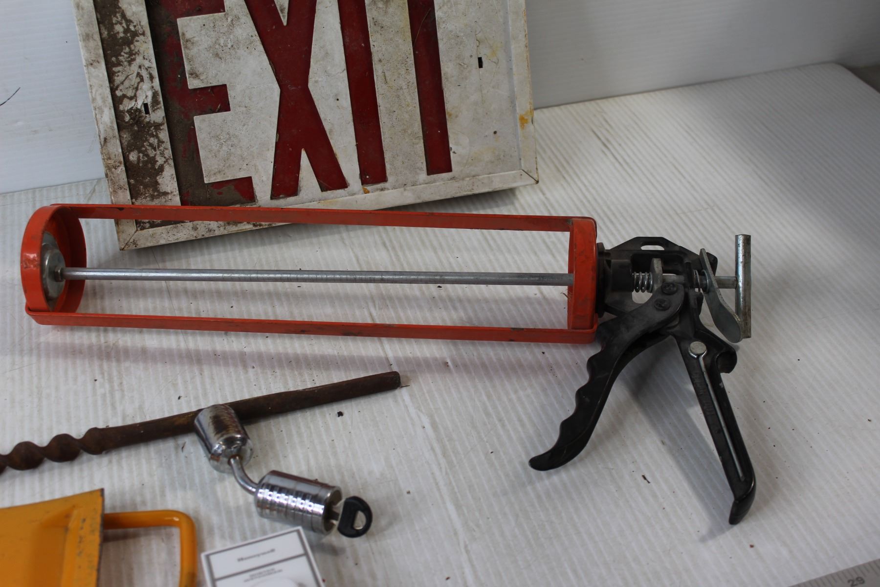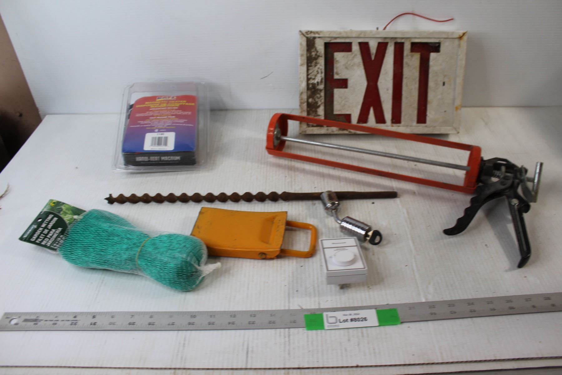 Garden Netting, Exit Sign, Caulk Gun, Masterlock, Magnetic Heater - As Is