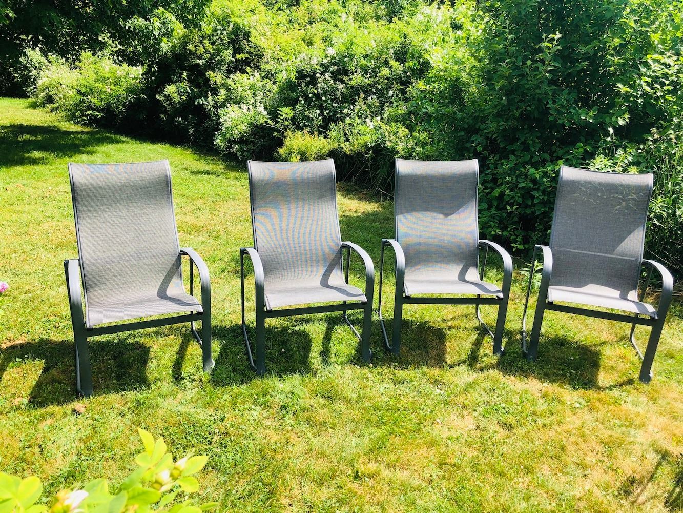 High style brand name designer glass top table with four matching swivel chairs. Original cost over $4000 from Litchfield CT. Never has been used!!