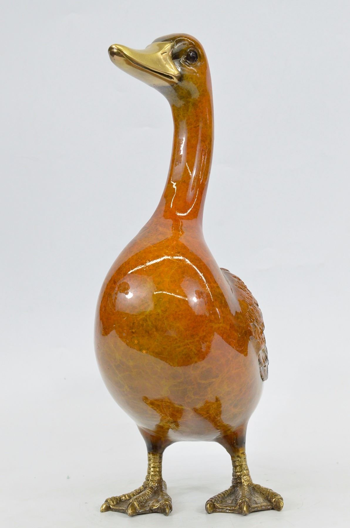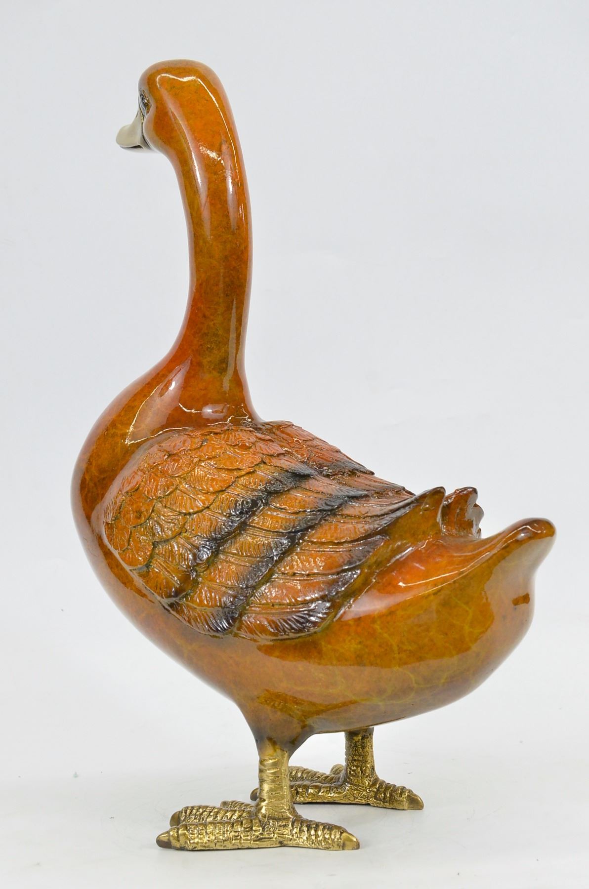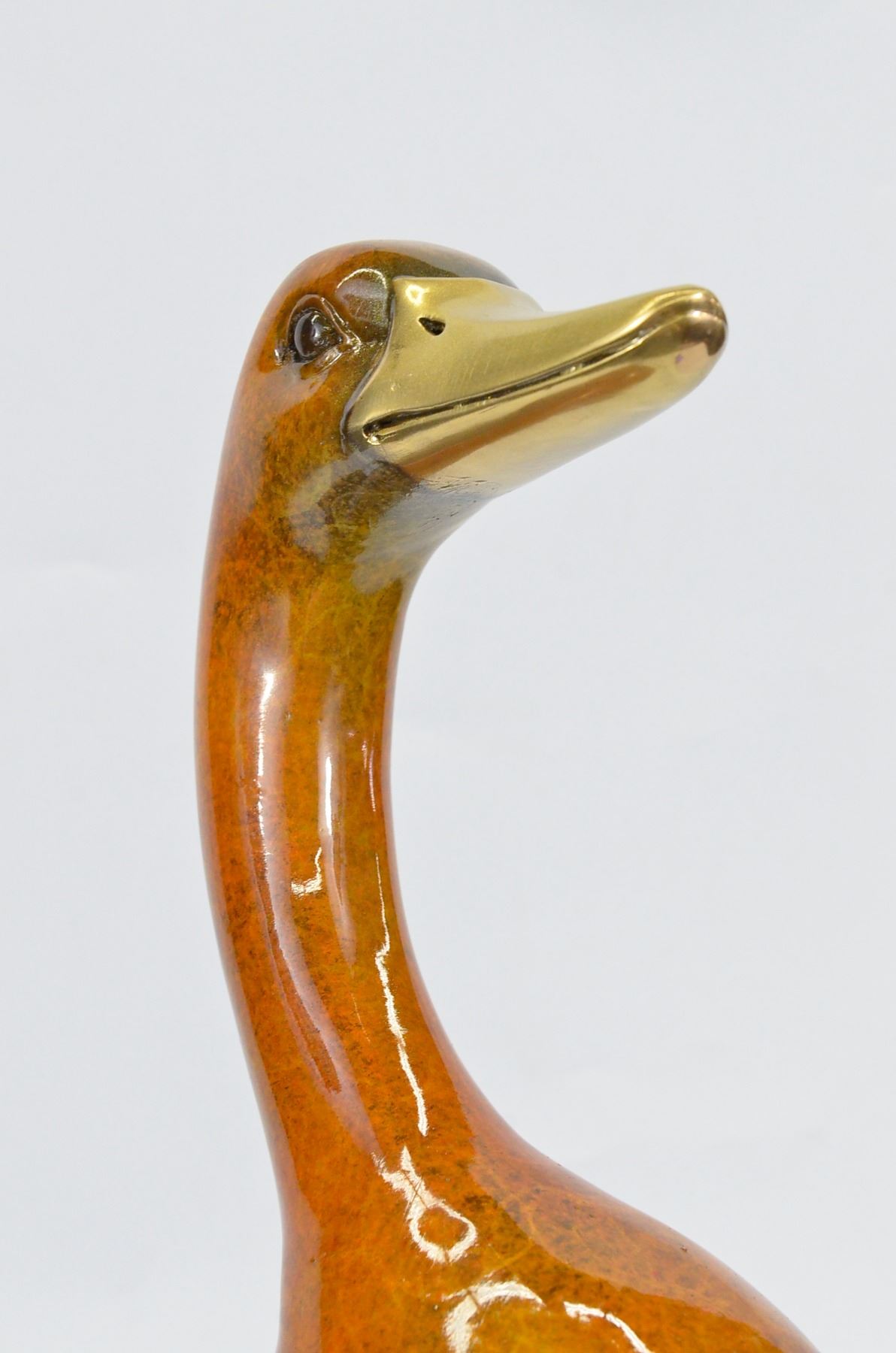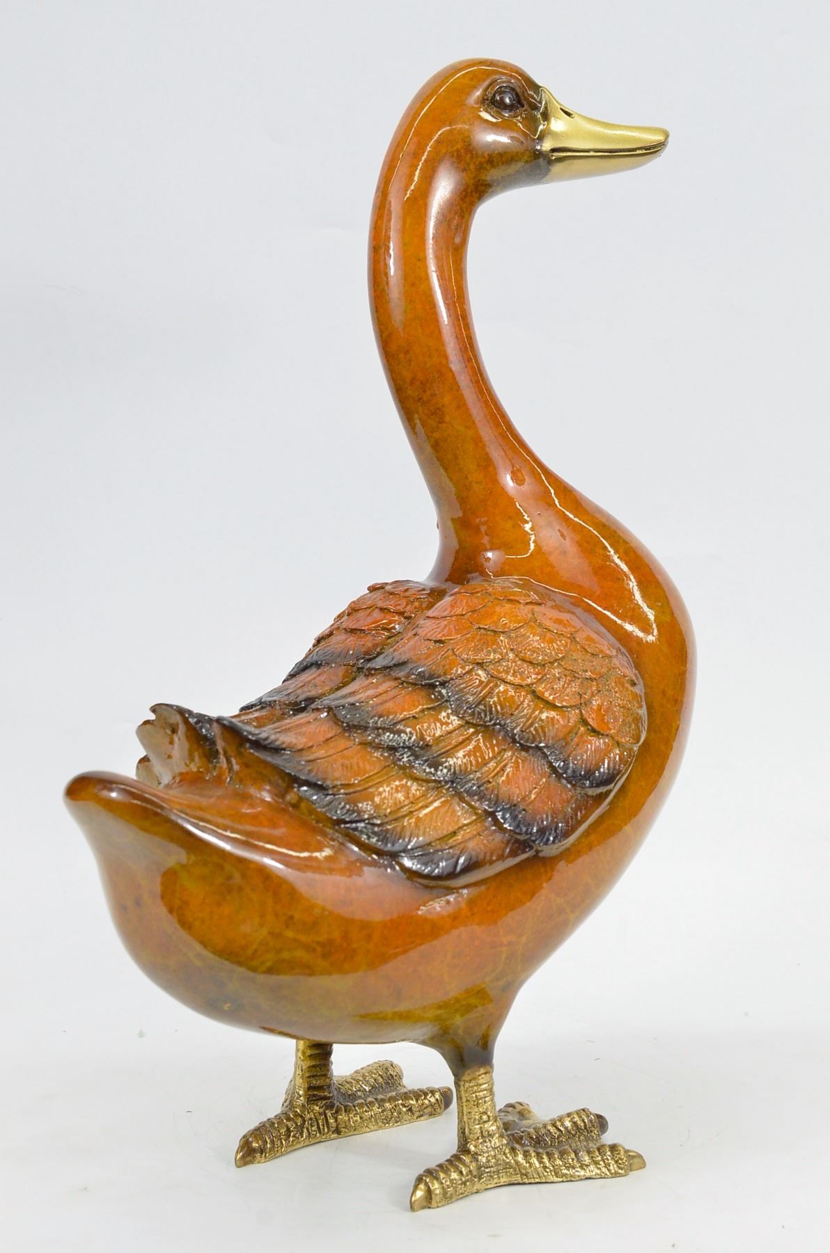 Delightful Duck Bronze Sculpture, After J. Moigniez .This bronze sculpture was produced using the Lost Wax casting method. The Lost Wax Cast method is the most precise metal casting technique in existence, ensuring exquisite detail of the original host model which is usually sculpted in clay or wax. This Lost Wax casting method is an extremely labor intensive and expensive process, but the end results produce a Heirloom Quality Masterpiece! Bronze Dimensions: Height 17 X Width 15 inches. Weight: 9 LBS. Please Note: This is a reproduced bronze sculpture from the original molded and signed. This featured bronze sculpture is a recast after the original, and has been done recently. This 100% bronze sculpture is an abstract piece certain to be a conversation piece.