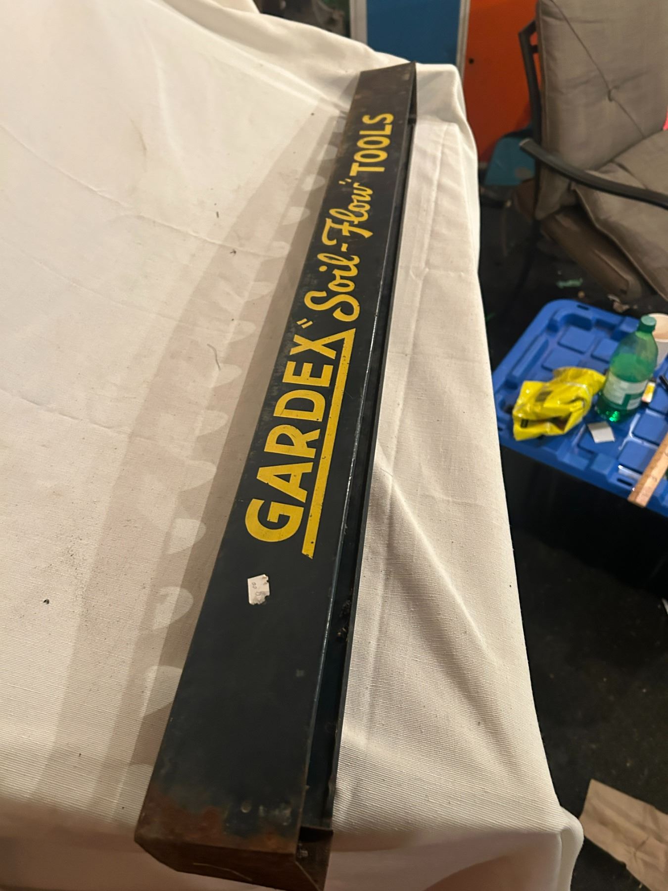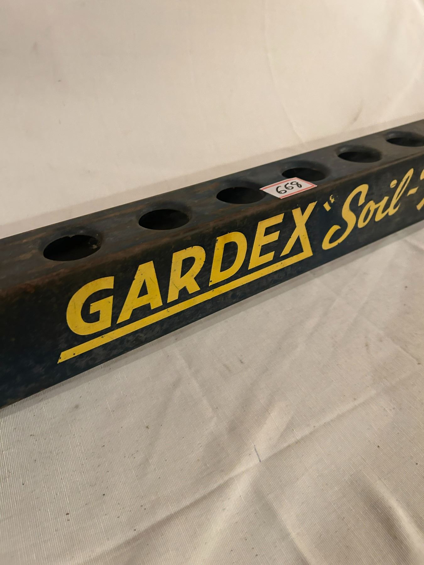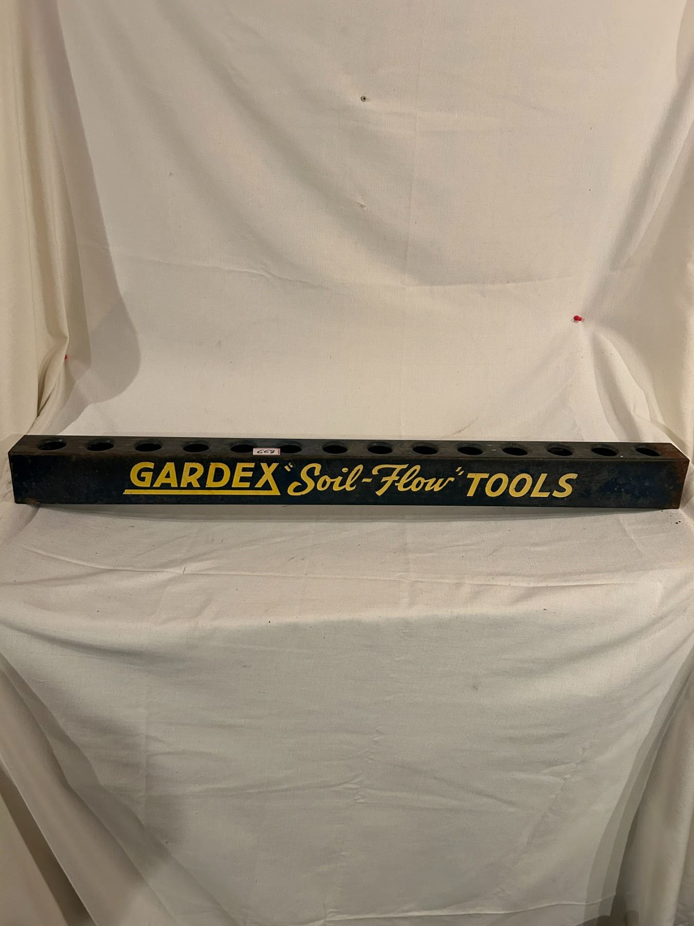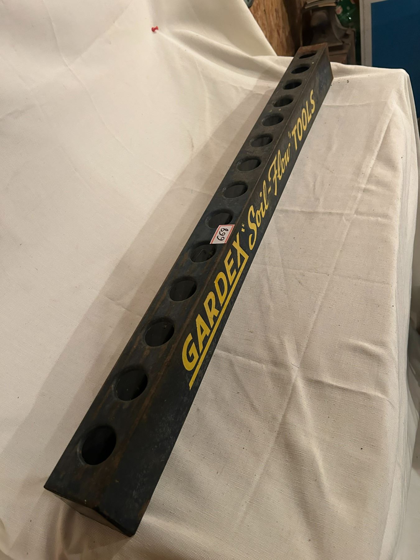 Garden Tool Holder - metal, 40"x3"x3", from old general store, Gardex