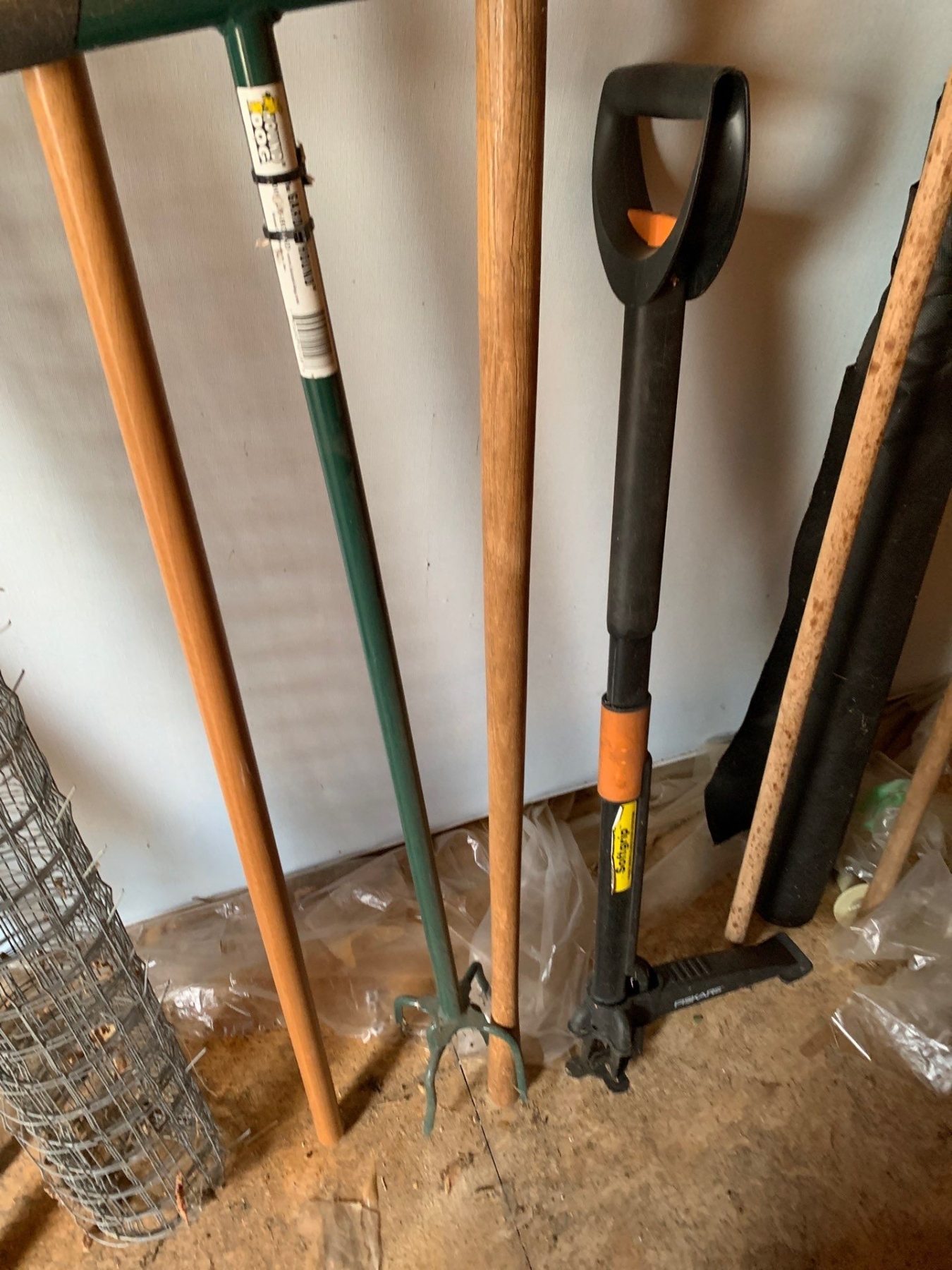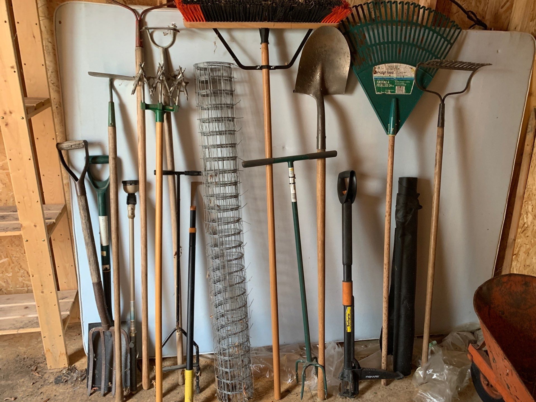 Garden Tool Lot, Rakes,Shoves, Weeding Tools and More