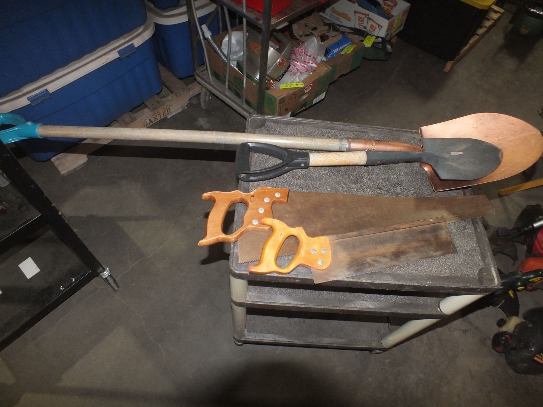 you get 2 hand saws, 2 spade shovels, and a leaf rake...sold as is / where is...used