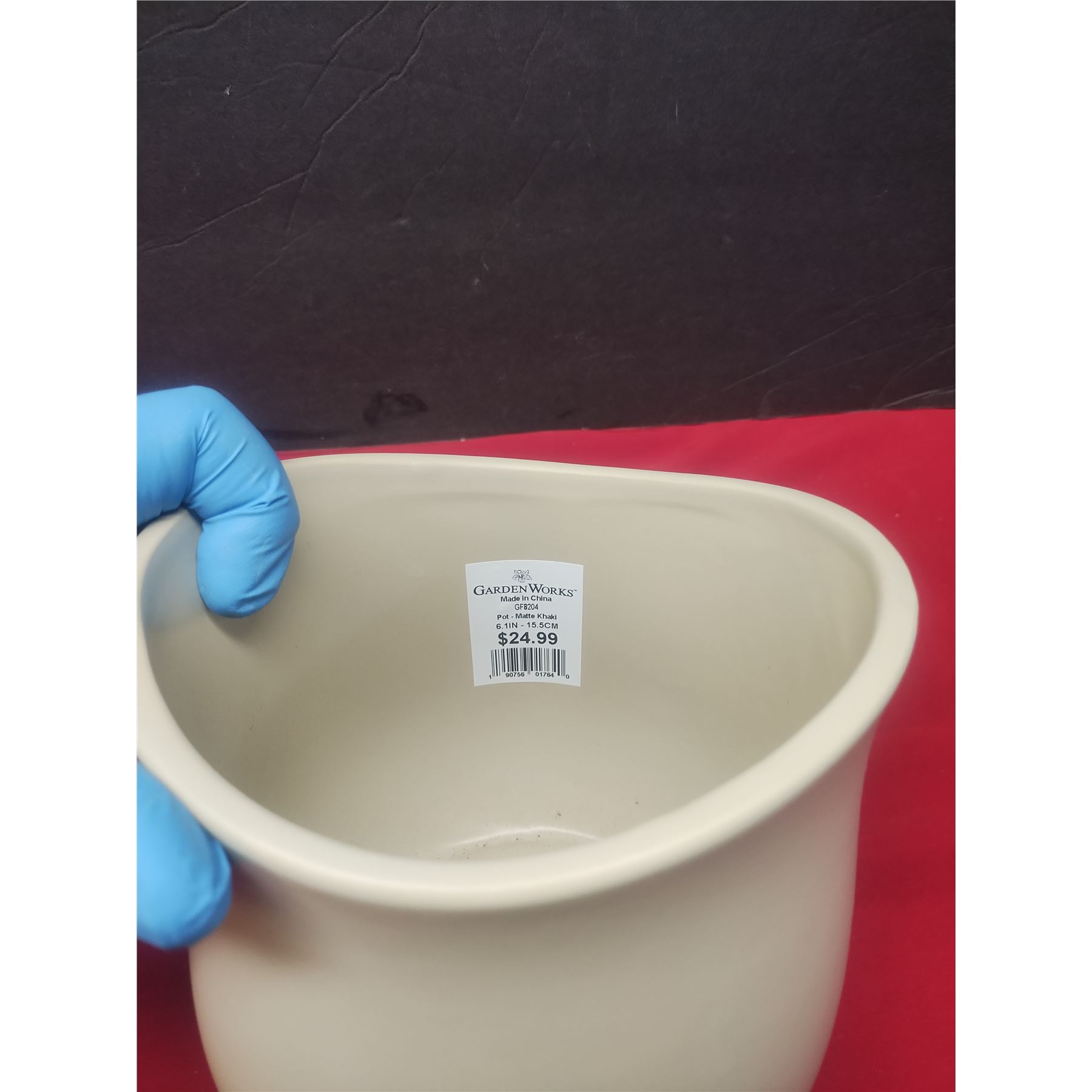 Brand new was only used for set decor, colour is matte khaki, its 7 inches tall.