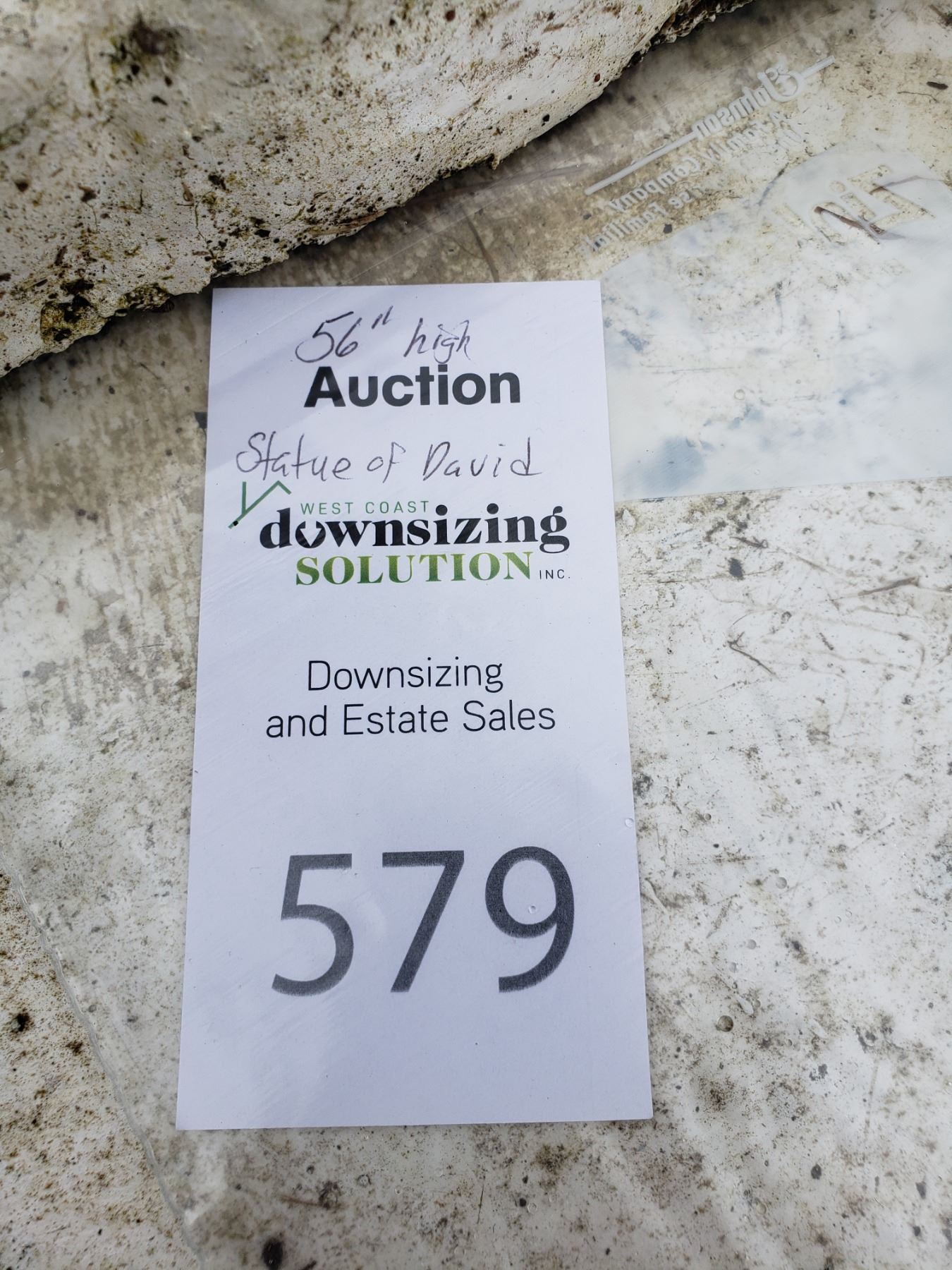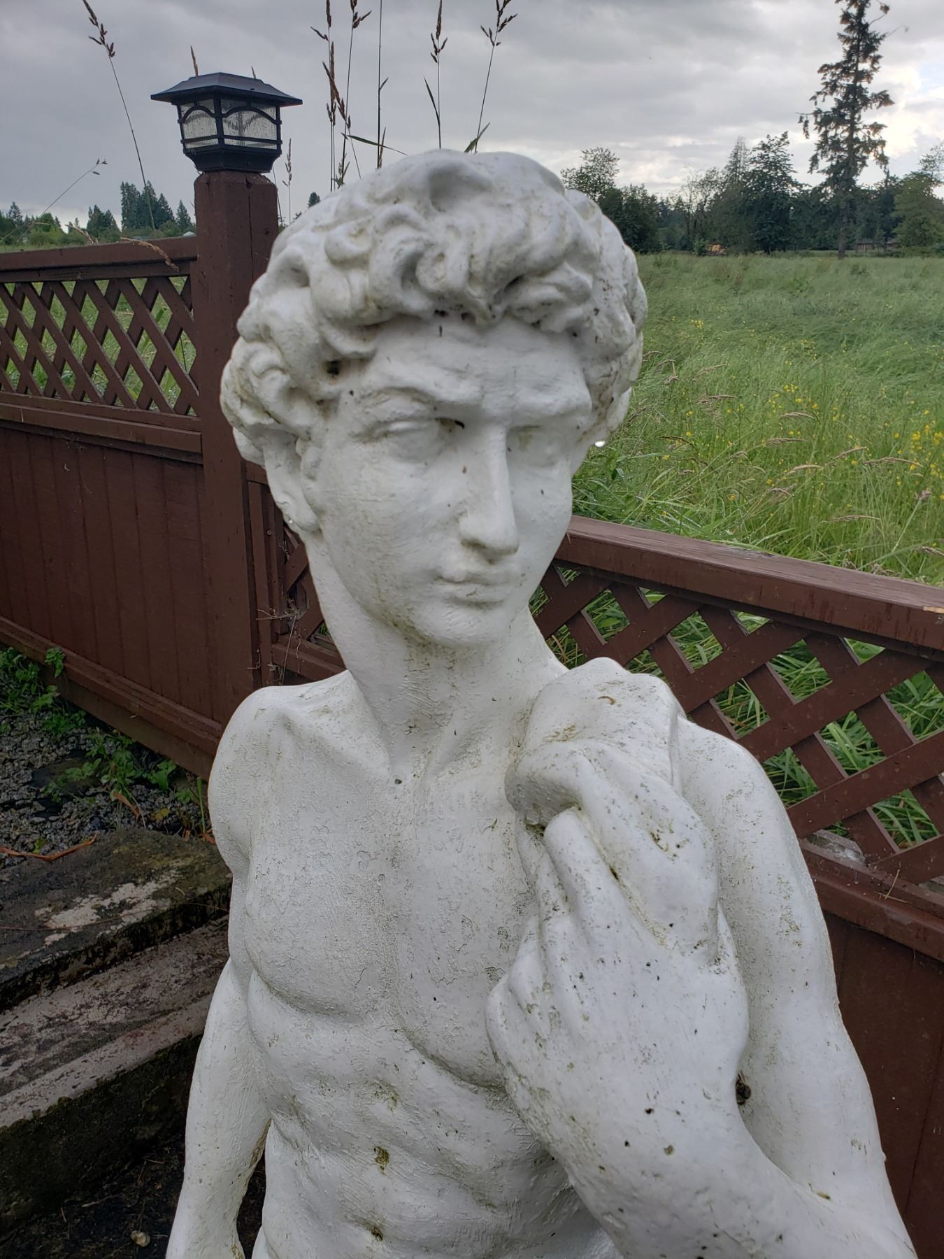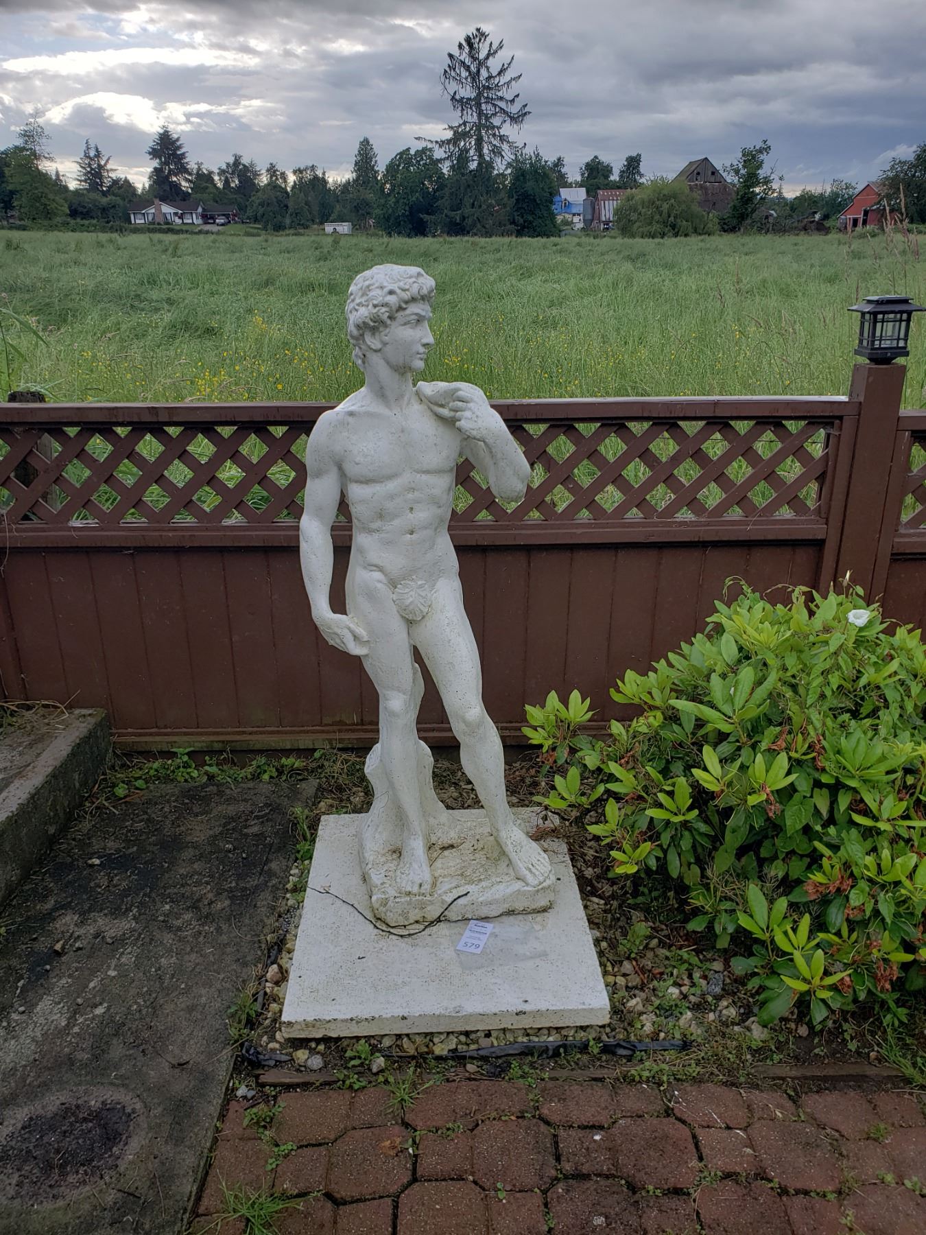 Statue of David, 56 tall, of stone. Very heavy, bring help to move. Pickup in category A between 9 and 10am.