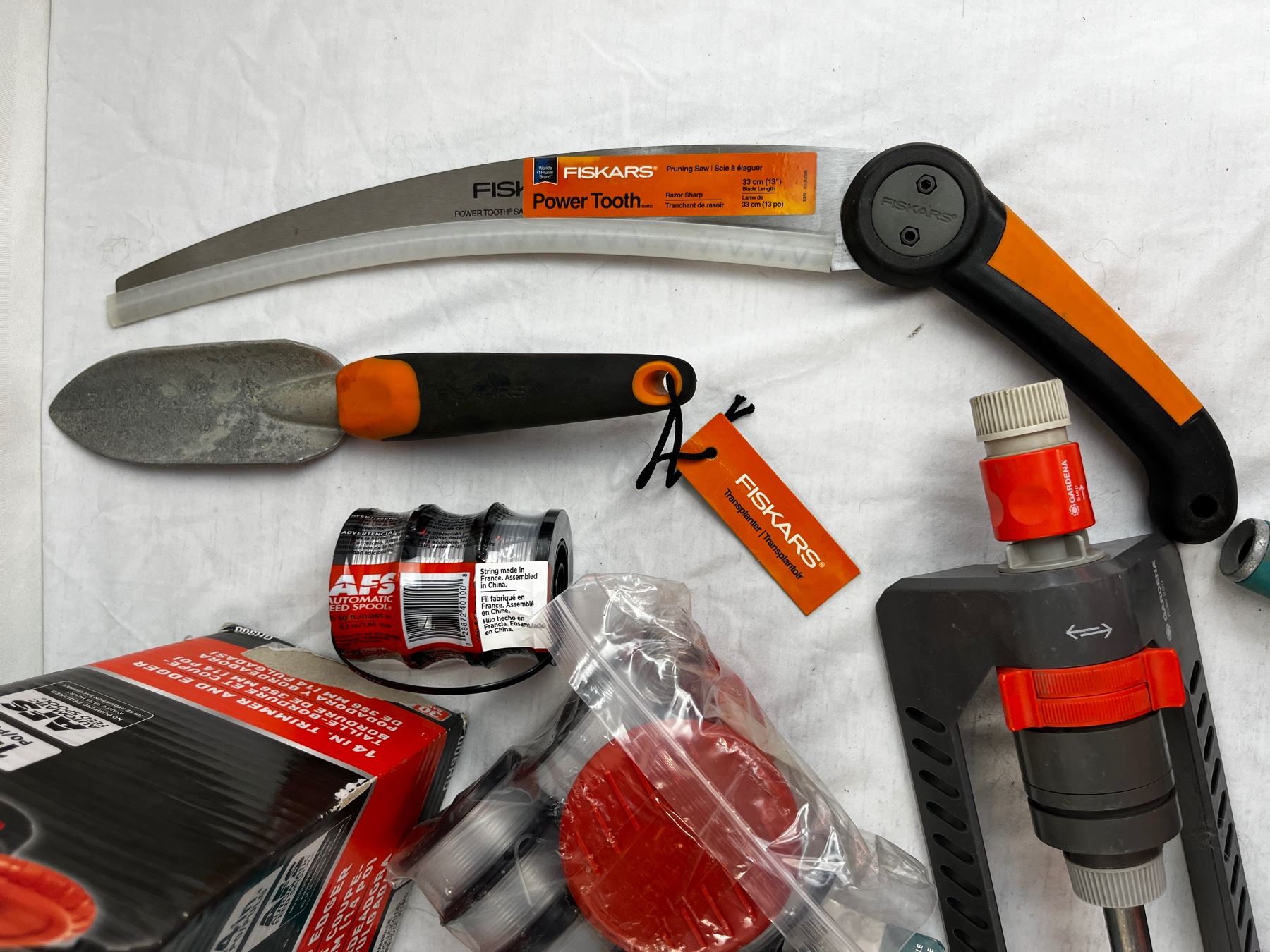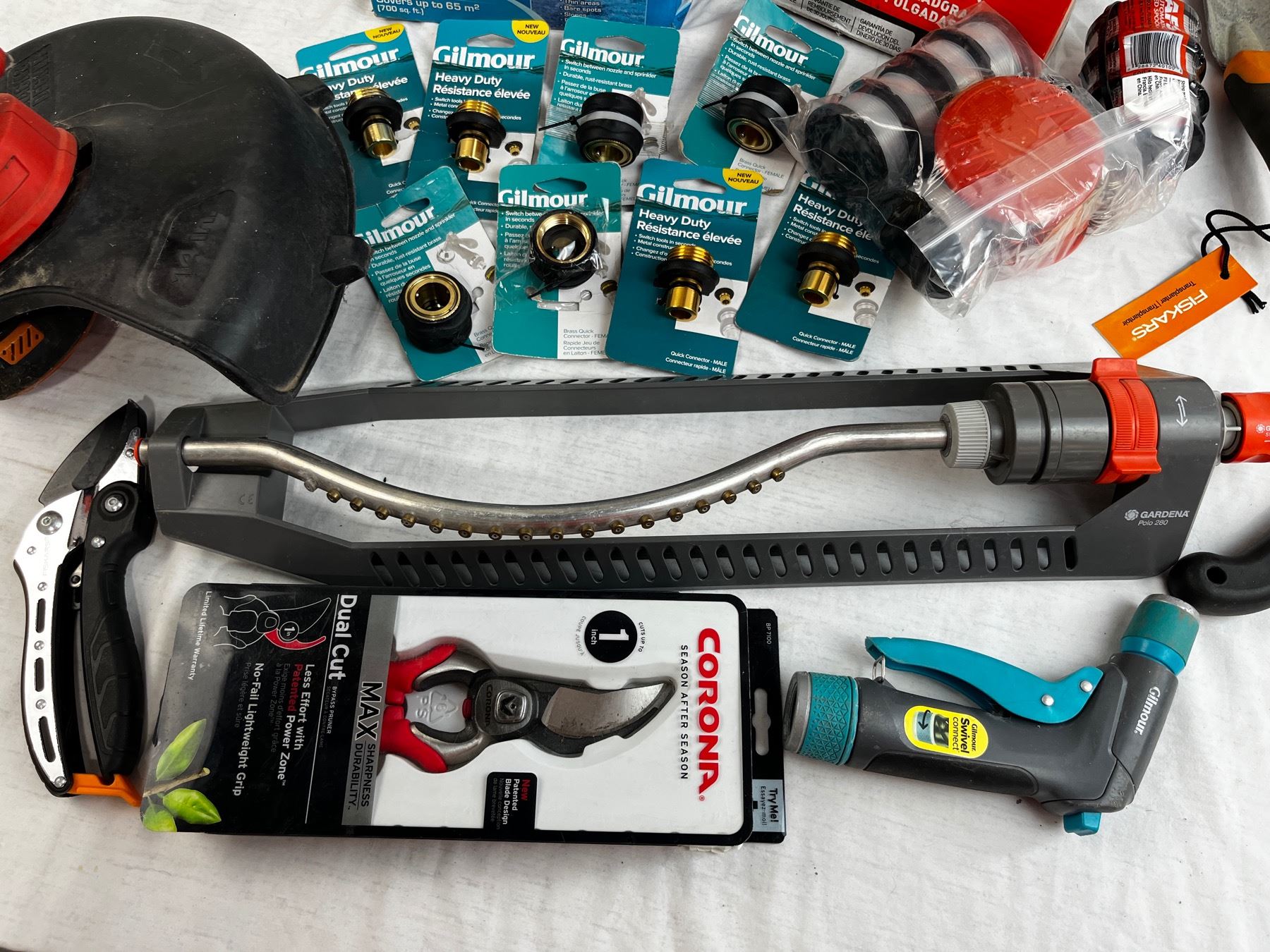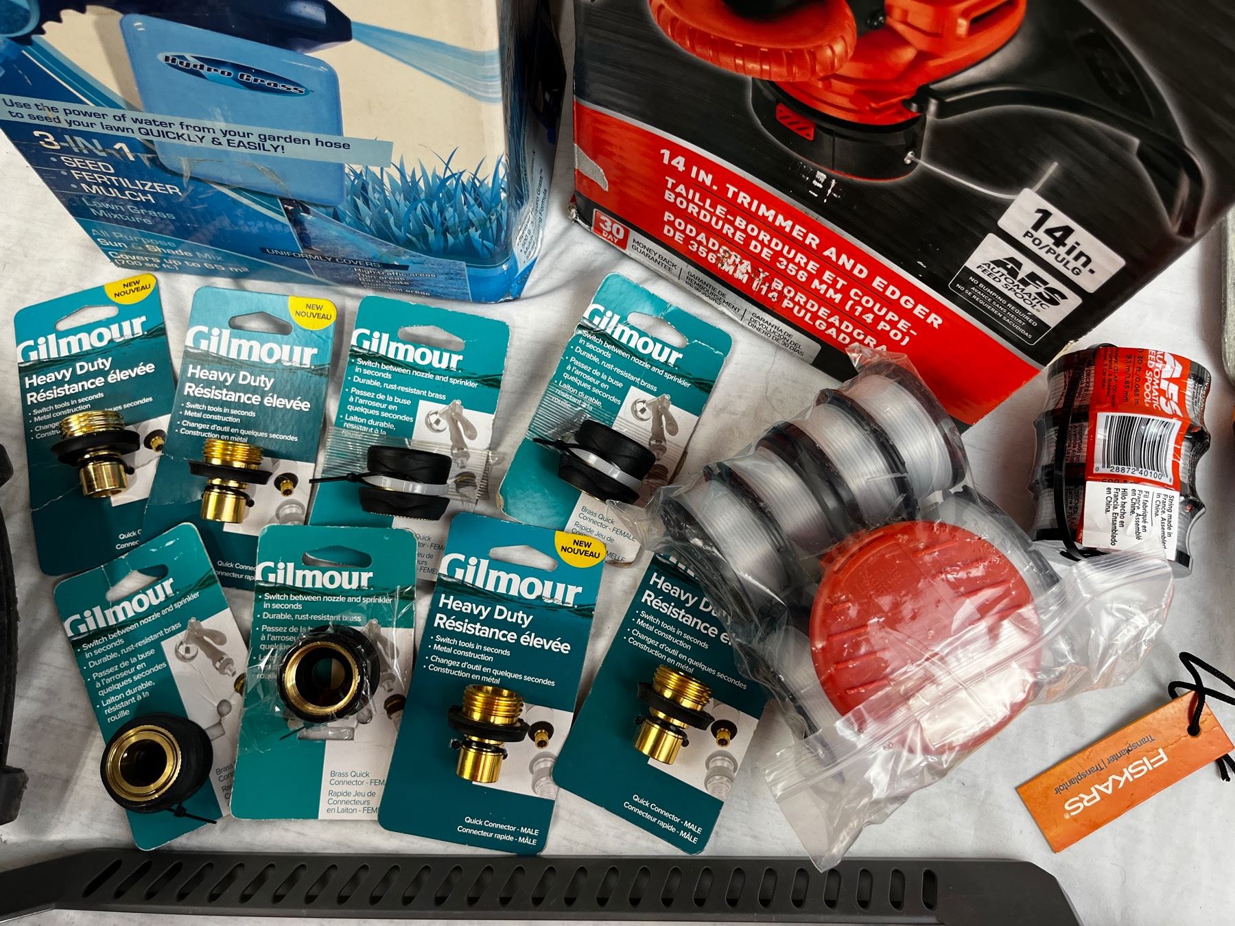 Includes Black and Decker 14" trimmer and edger, Hydro Grass lawn hydroseeding system, sprinklers, hand tools
