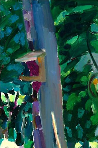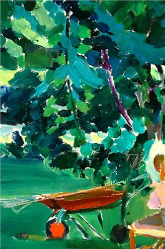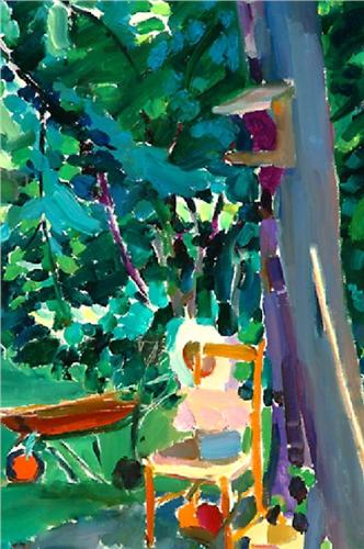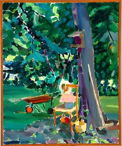 Gardening Tools and Wheel Barrow by a Tree (1968), Oil on Canvas by Joseph O'Sickey