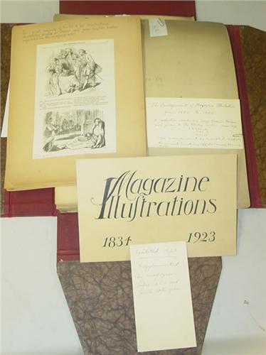 Gardner, George Clarence (a Collection Made by). The Development of Magazine Illustrations From 1850 to 1906. Folio - over 12" - 15" tall. Good condition. ONE OF A KIND. A Collection made by George Clarence Gardner and given to the Library by Him, June 1921. Gardner was an illustrator for the book "Springfield [Massachusetts] Present and Prospective. This collection may have been another book he was working on. Each illustration is mounted, in folders and protected in a portfolio with ties. MUST BE SEEN.