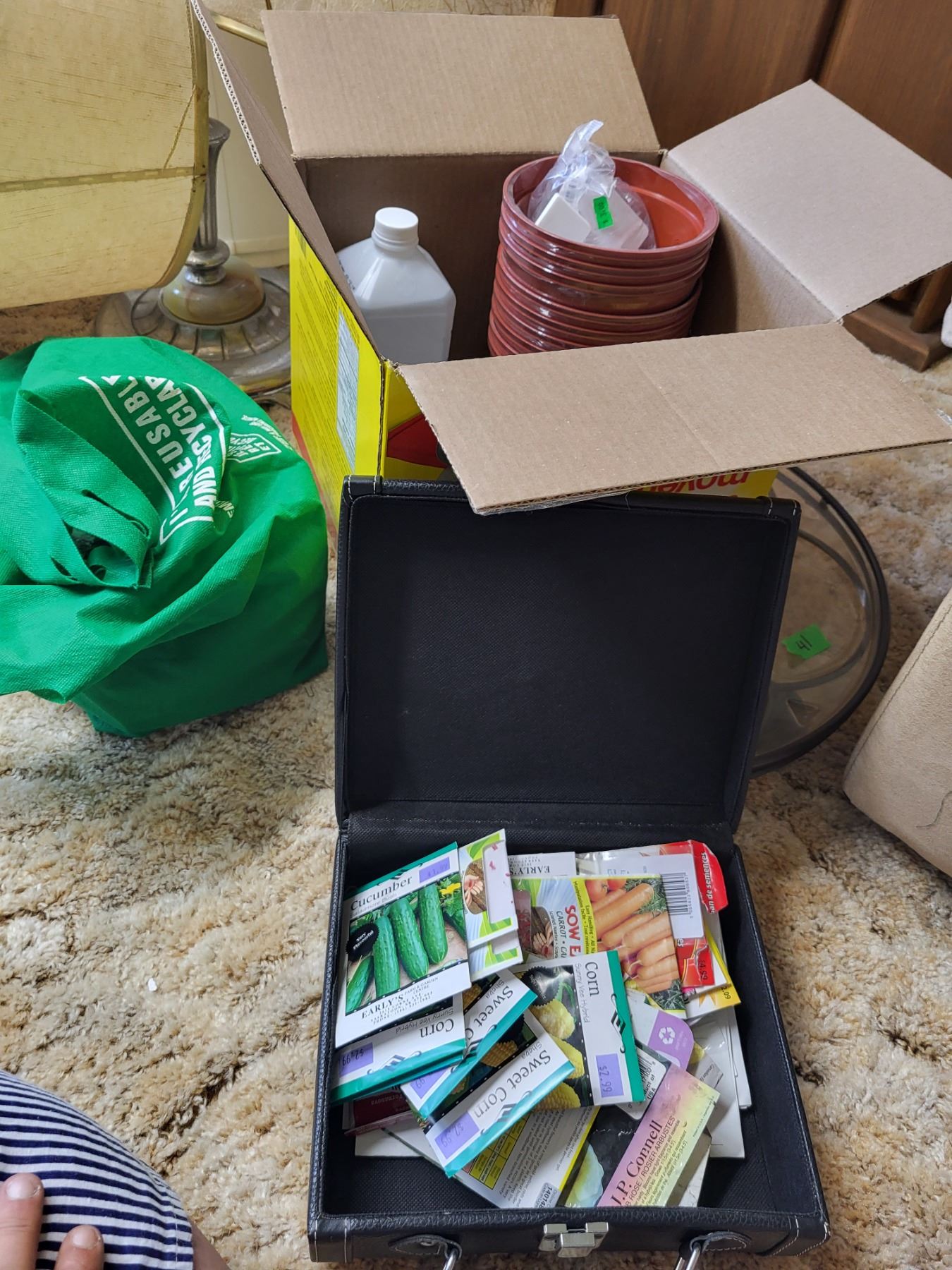 Gardners Lot - Oodles of Seeds, Bulbs, Very Large Plant Holder on Wheels, Rubbing Alcohol +