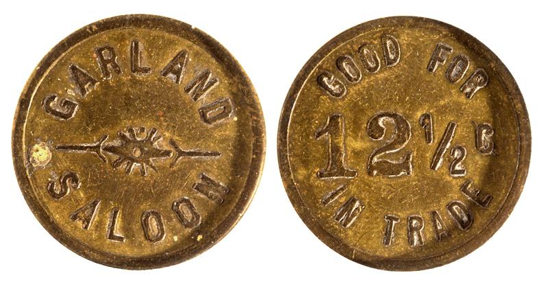 Obverse: Garland / Saloon; reverse: Good For / 12 1/2c / In Trade.