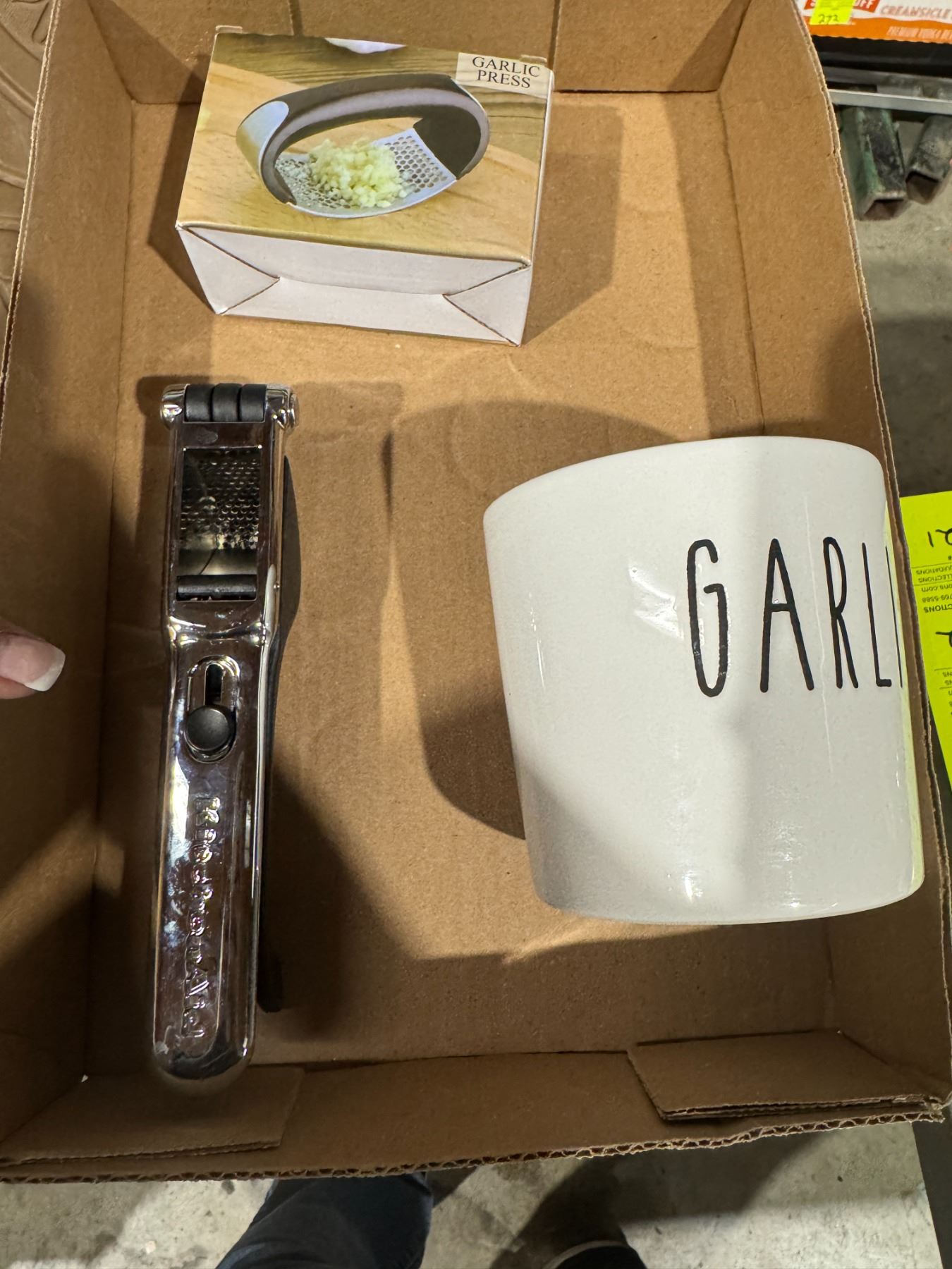 Garlic container and garlic press