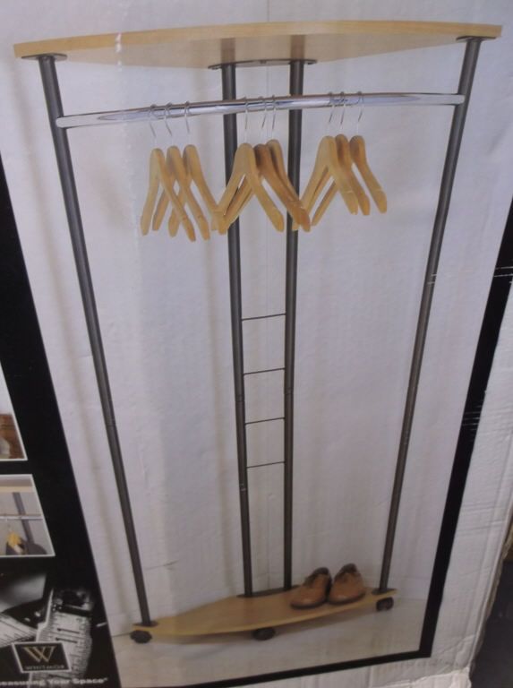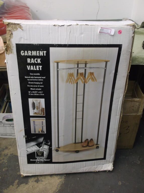 Valet Garment Rack - 36x24x63.5 Laminated Wood - Top & Bottom Shelf New in Box