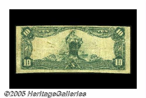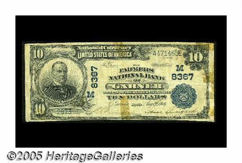 <B>Garner, IA</B></I> - $10 1902 Plain Back Fr. 626 <B>The Farmers NB</B></I> Ch. #(M) 8367<BR>An extremely scarce Hancock County issue from an institution which failed in 1934 and leaves a scant four large examples in the census. When the bank closed only $1,870 remained in circulation of its large issue, which was confined to the Third Charter Period. Scattered tape removal residue is noted on the face. The officers' signatures remain fully legible. <B>Fine.</B></I>