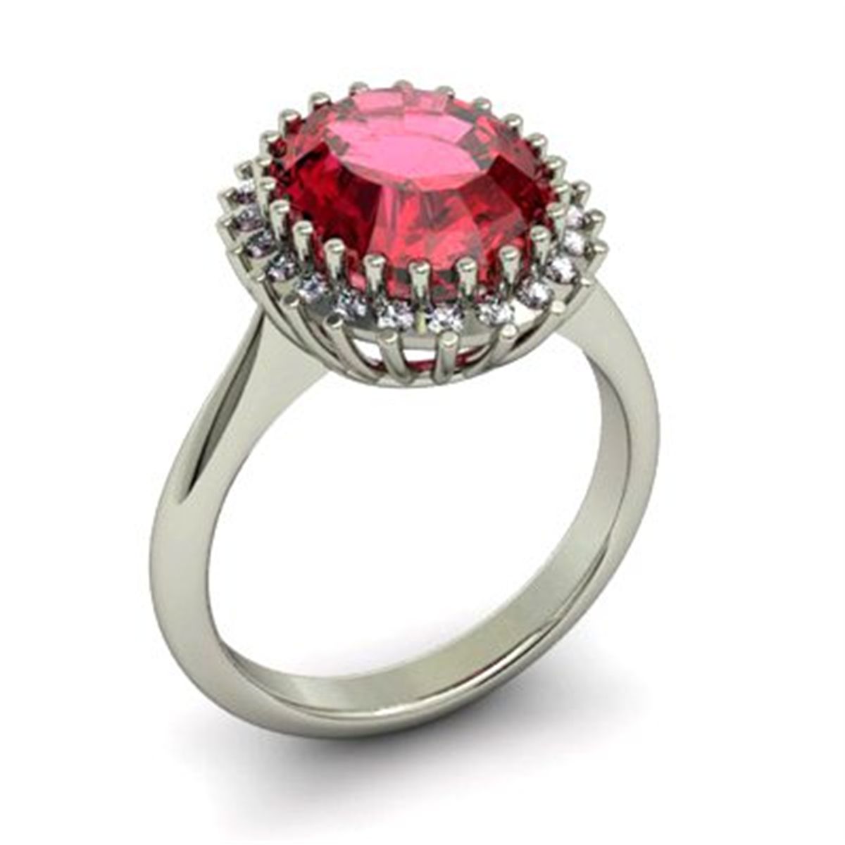 Mainstone: Garnet ; Total CTW: 5.22 ; Metal Purity: 18kt ; Metal: W/Y Gold ; Diamond Count 1: 22 Round Cut ; Diamond CTW 1: 0.22 ; Diamond Clarity: SI-I ; Diamond Color: G-H ; Gem Count 1: 1 Oval Cut ; Gem CTW 1: 5 ; Gem Size(mm): approx. 12x10mm ; Gem Clarity: AA-AAA ; Weight(g)5.4; Availability: 3-10 Business days, ready to ship, with certification of appraisal will take 2 weeks. ; MSRP: $1556