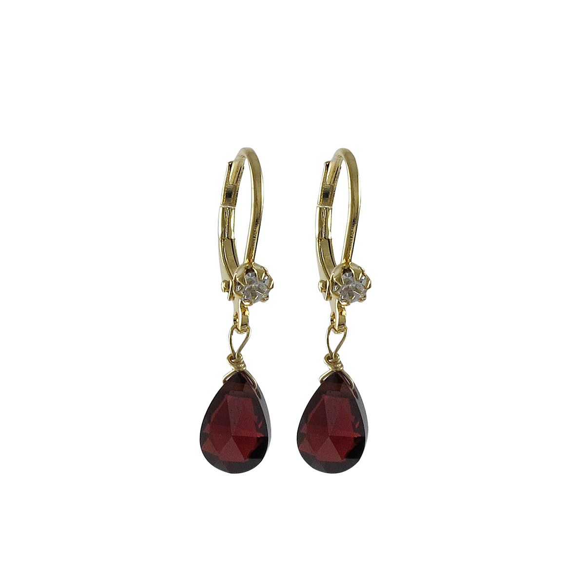Garnet 6X9 Teardrop CZ On Gold Tone Brass Lever Back With Crystal Earrings- 1.08"