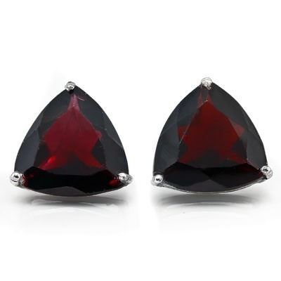 Trillion cut 6mm Garnet gemstones are set in Platinum over Sterling Silver mountings with friction backs. 1.2g