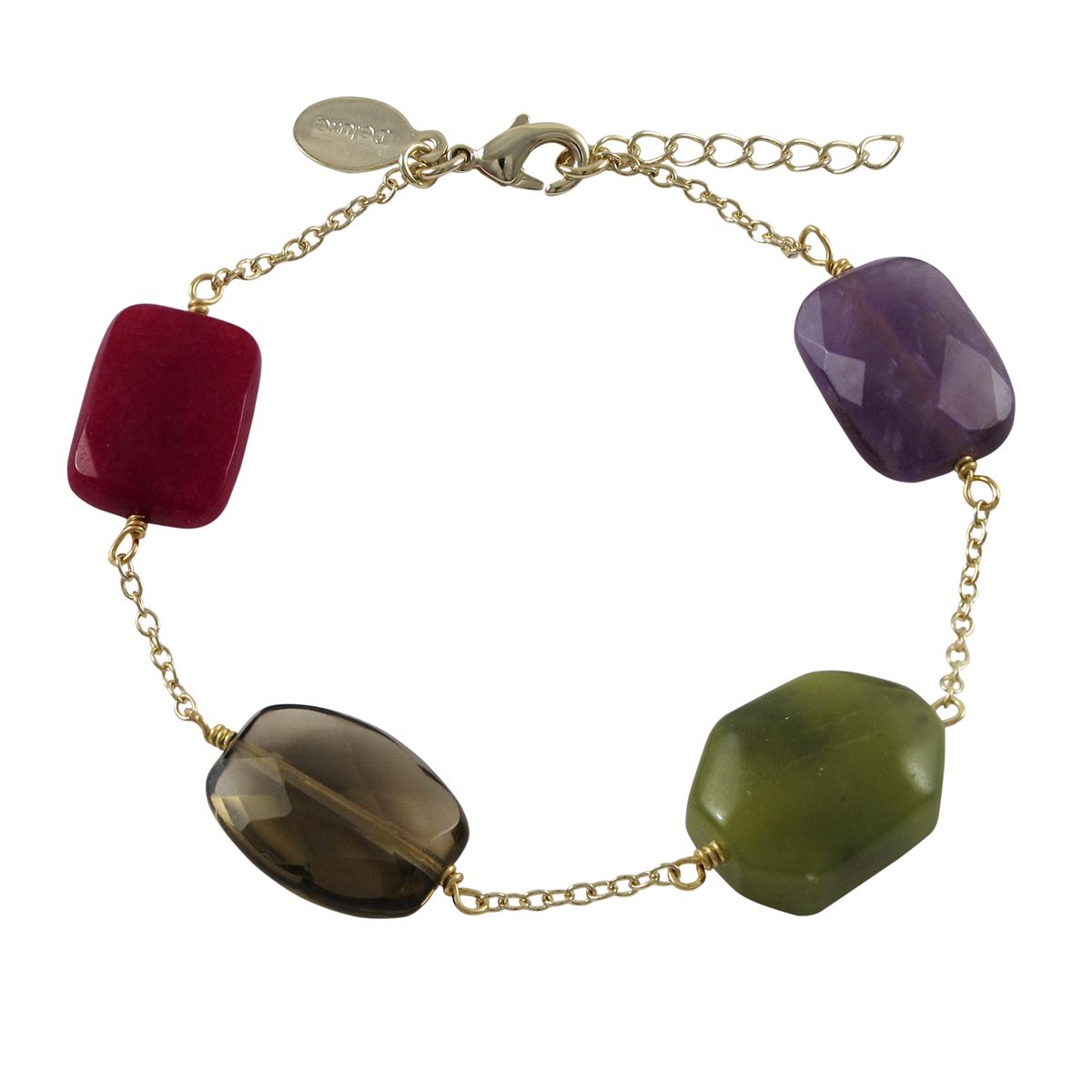 Garnet And Amy Combination Semi Precious Faceted Stones On Gold Plated Brass Chain, 7" 1"