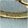 In 14K yellow gold, there are two .06ct round garnet gemstones and one .06ct round citrine gemstone. Size 6 1/2 2.0g