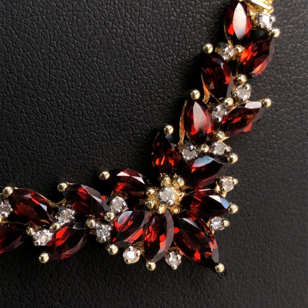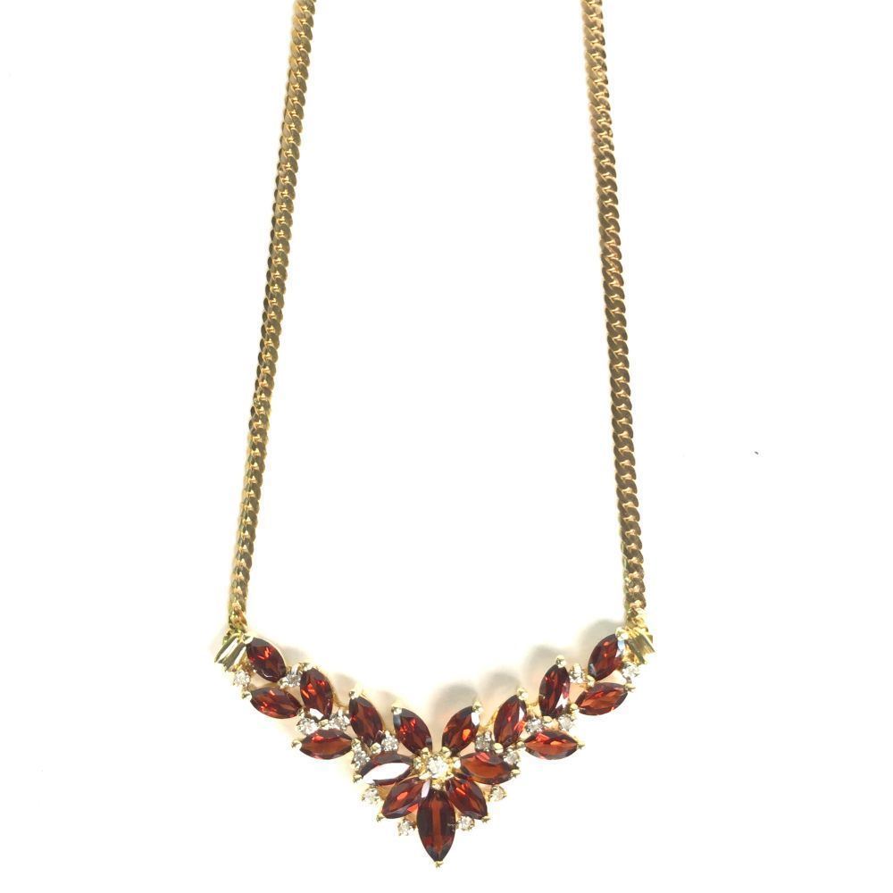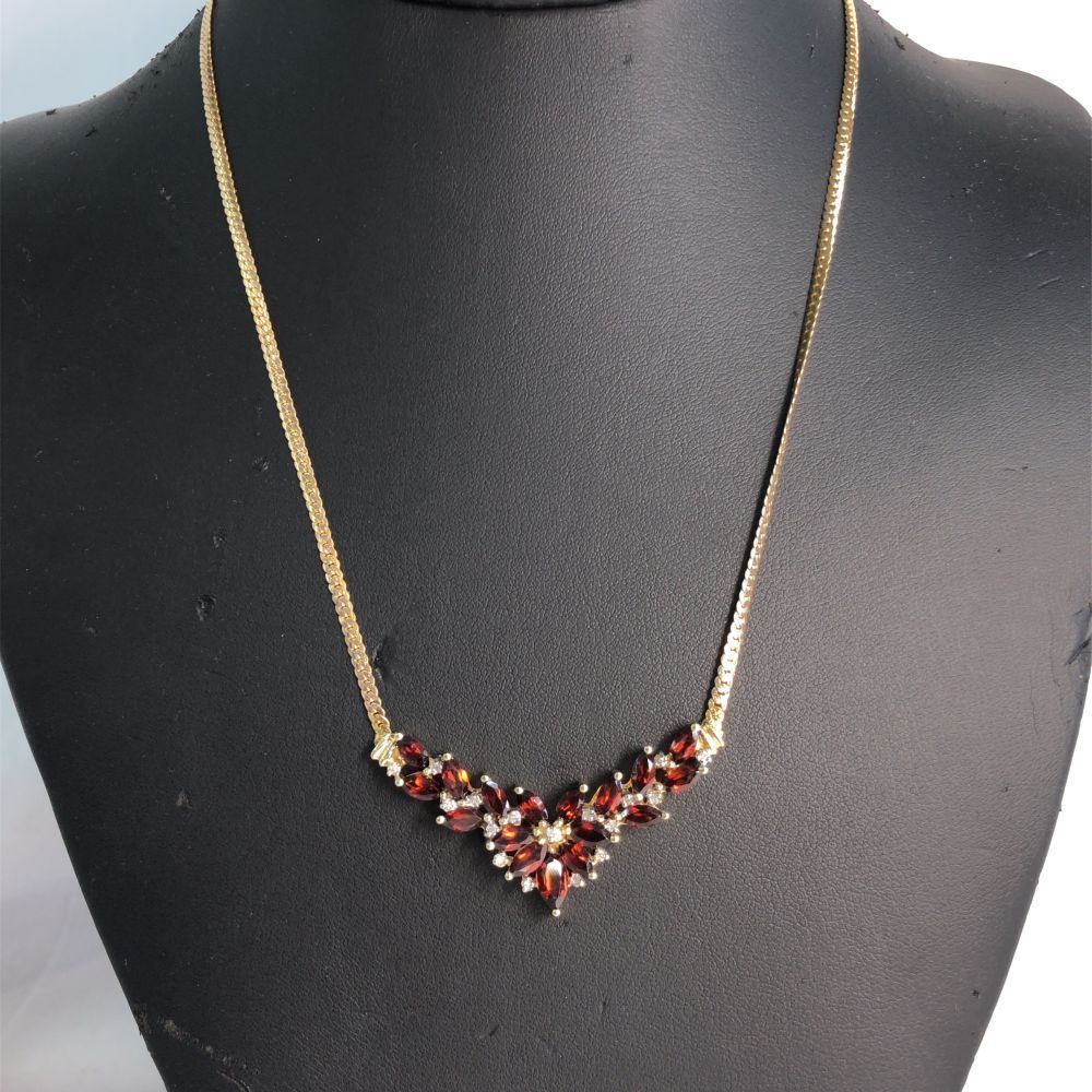 TITLE DESCRIPTION: Vintage 14k Garnet Cluster Necklace