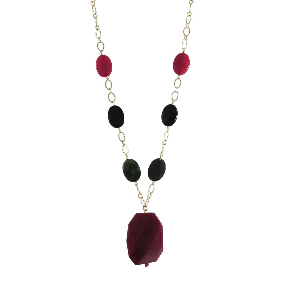 Garnet Combination Semi Precious Stone Necklace, Gold Plated Brass Chain, 20"