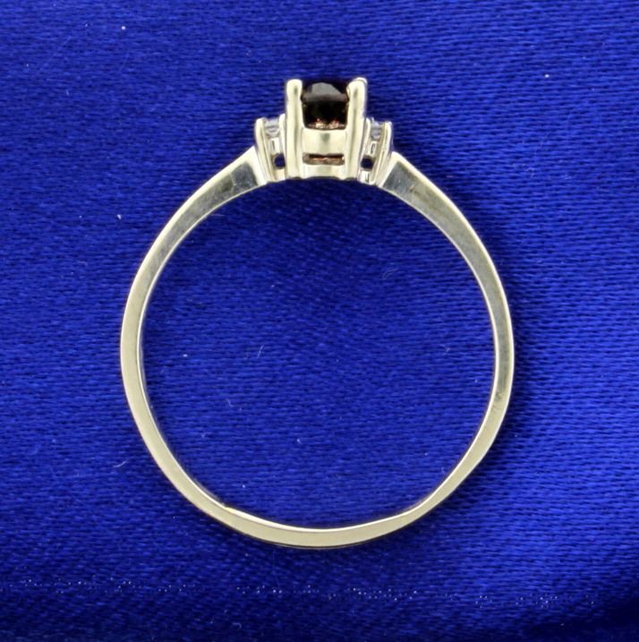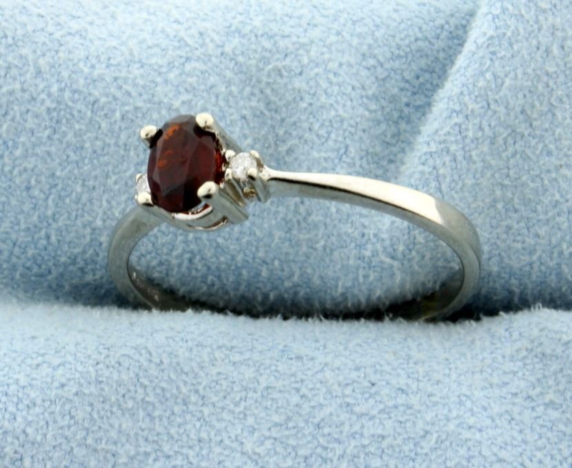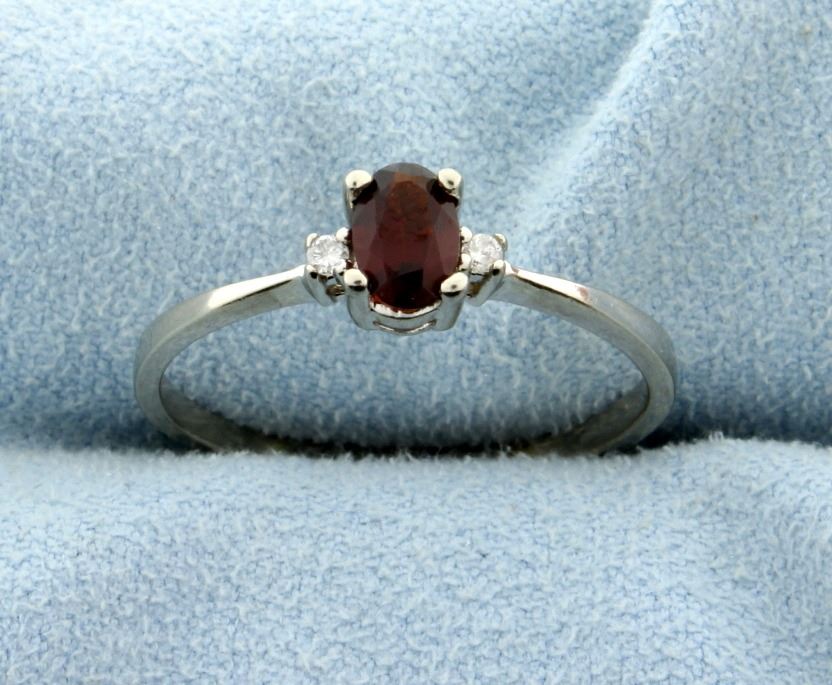 In 14k white gold this ring contains oval garnet gemstones in the center. With a .02ct round diamond on each side. Size 10      2.1g