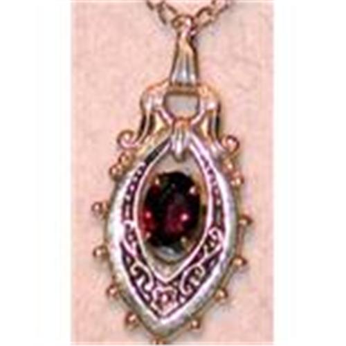 Another pretty drop, this one is garnet set in a gold filled mounting. A graduating girl would love the old fashioned look of this.</em></td>