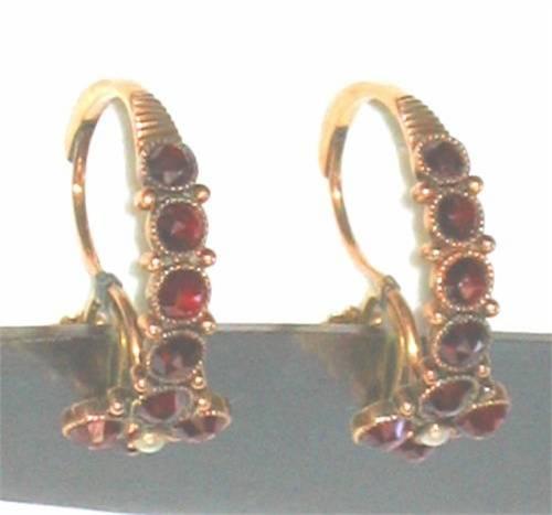 Magnificent pair of true Georgian era earrings. Large unmarked gold hoop post earrings. Elegant cross configuration w/ garnets running length & width of cross, single pearl in center. Truly elegant! (22-152)