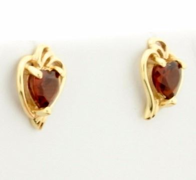 10K yellow gold they are 3/8 inch long, has 5x5mm garnet gemstone and friction backs. 1.3g