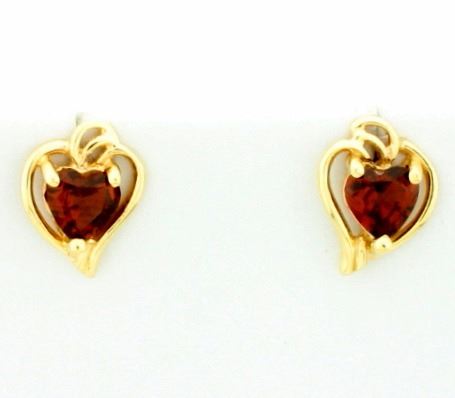 10K yellow gold they are 3/8 inch long, has 5x5mm garnet gemstone and friction backs. 1.3g