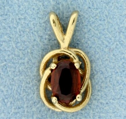 The pendant is 14K yellow gold, it is 1/2 inch long with a 1/2ct oval garnet. .9g