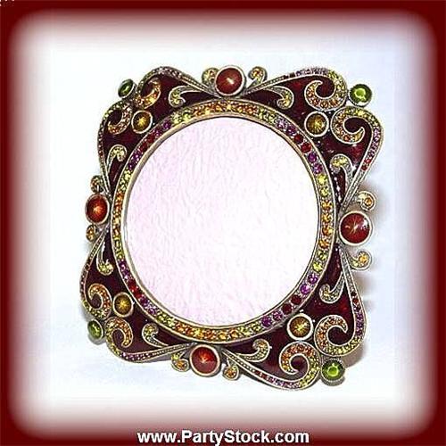 Our Garnet (deep red) hued, Cabochan photo frame is set with large and small Swarovski Crystals for a rich, elegant look. Delivers a timeless look. Will house your 3.5 inch picture.