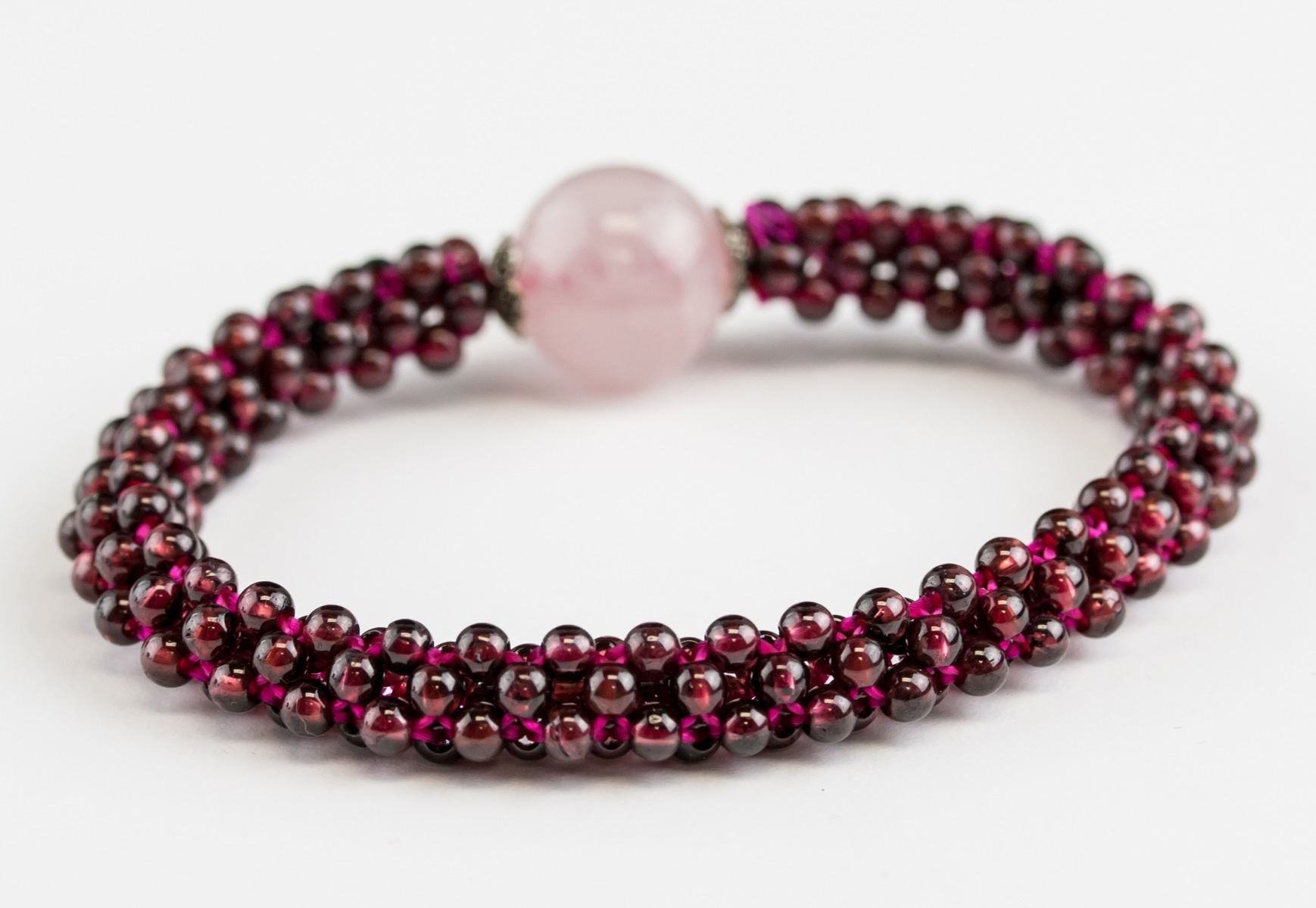 Garnet rose quartz stretchable bracelet, retail value $120.
