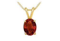 An oval  natural garnet is securely held in a luscious 14K yellow gold prong setting. This gemstone pendant has a total weight (TGW) of 1.00ct and comes with a standard 16 14K yellow gold chain.