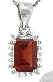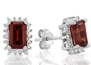 Emerald cut 2.75CTW Garnet gemstone earrings and pendant set with 0.02ctw diamond accents set in Platinum over Sterling Silver for extra shine. Set includes sterling silver 18" twist chain with friction earring backs. 3.3g