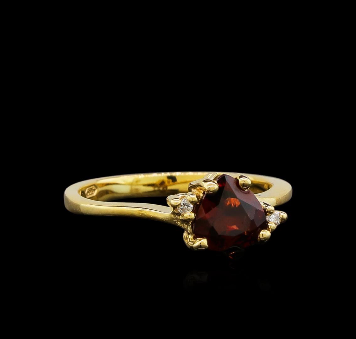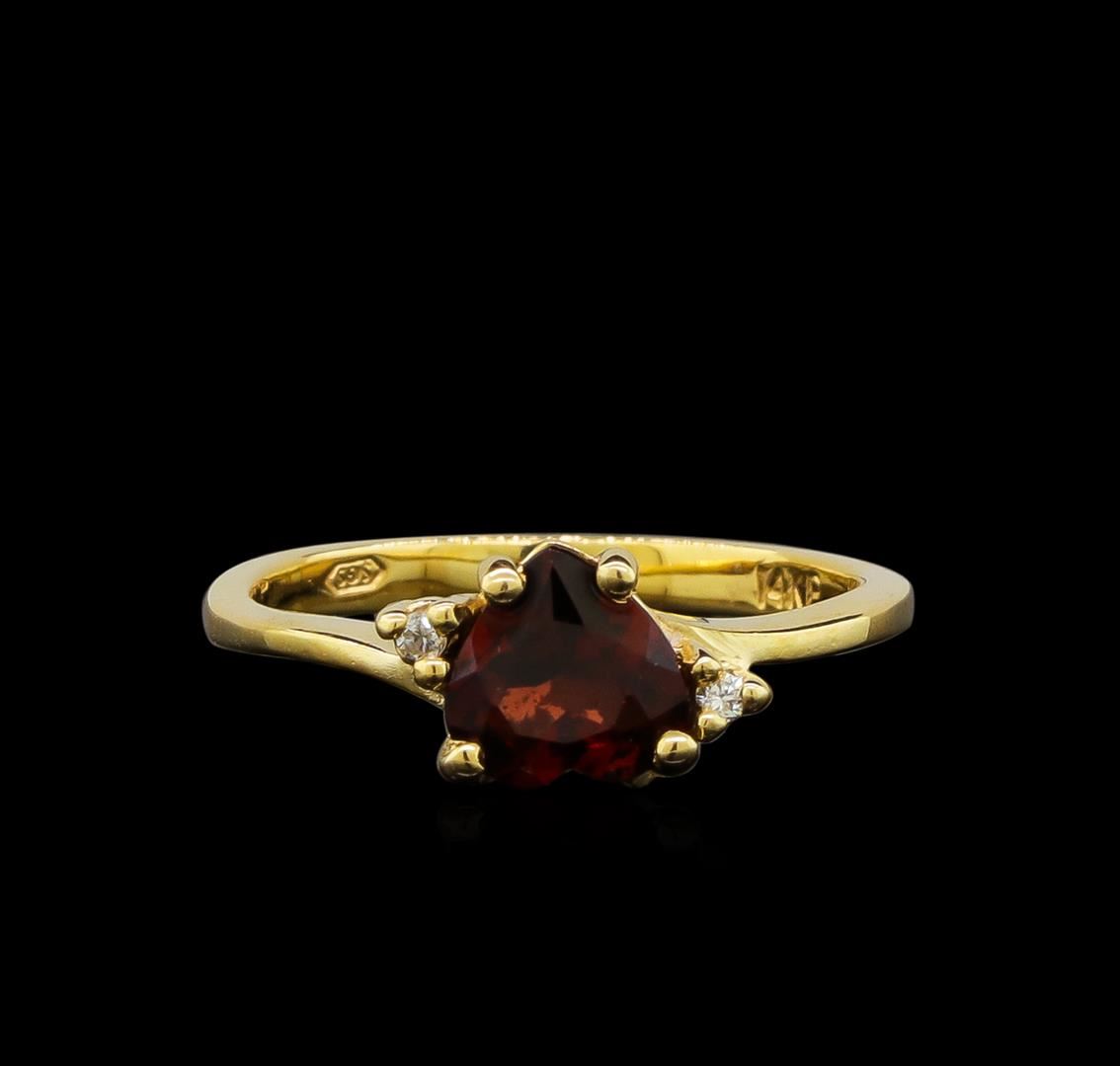 Garnet and Diamond Ring - 14KT Yellow Gold. Total Weight: 2 grams.