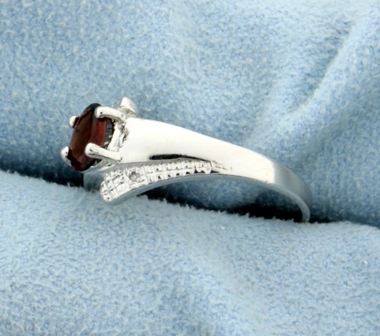 Contains Genuine 1/2 ct Oval Garnet gemstone and two .01 ct Diamonds. Set in platinum over sterling silver. Size 7.25. 2.2g.