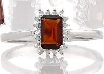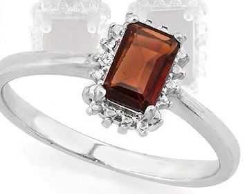 Emerald cut .80ct Garnet gemstone ring with 0.005ctw diamond accents set in Platinum over Sterling Silver for extra shine. Size 7. 1.8g