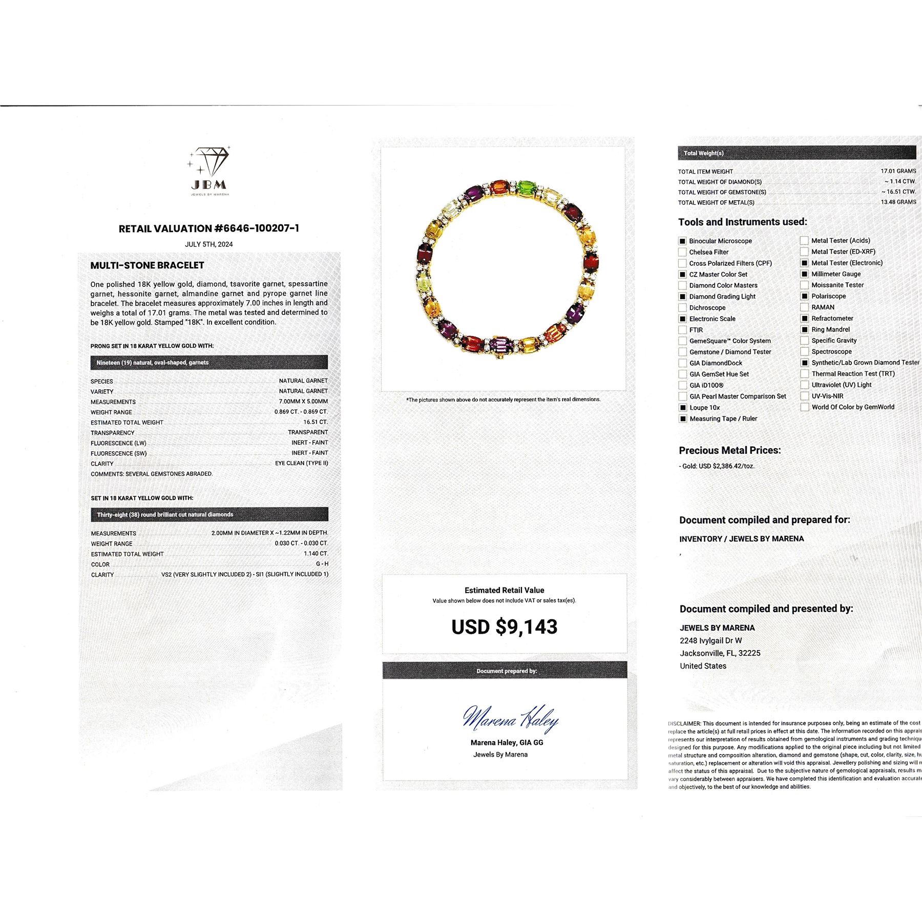 DESCRIPTION DETAIL: 18k Multi-colored Garnet & Diamond Tennis Bracelet