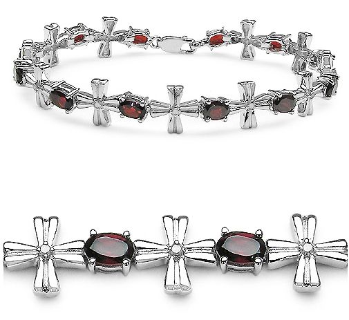 Garnets, Diamonds & Strl. Silver Bracelet. .925 Sterling Silver bracelet has 23 oval garnets and 11 round accent diamond. Garnet and diamond total carat weight: 7.9. Weight: 15.55 grams.