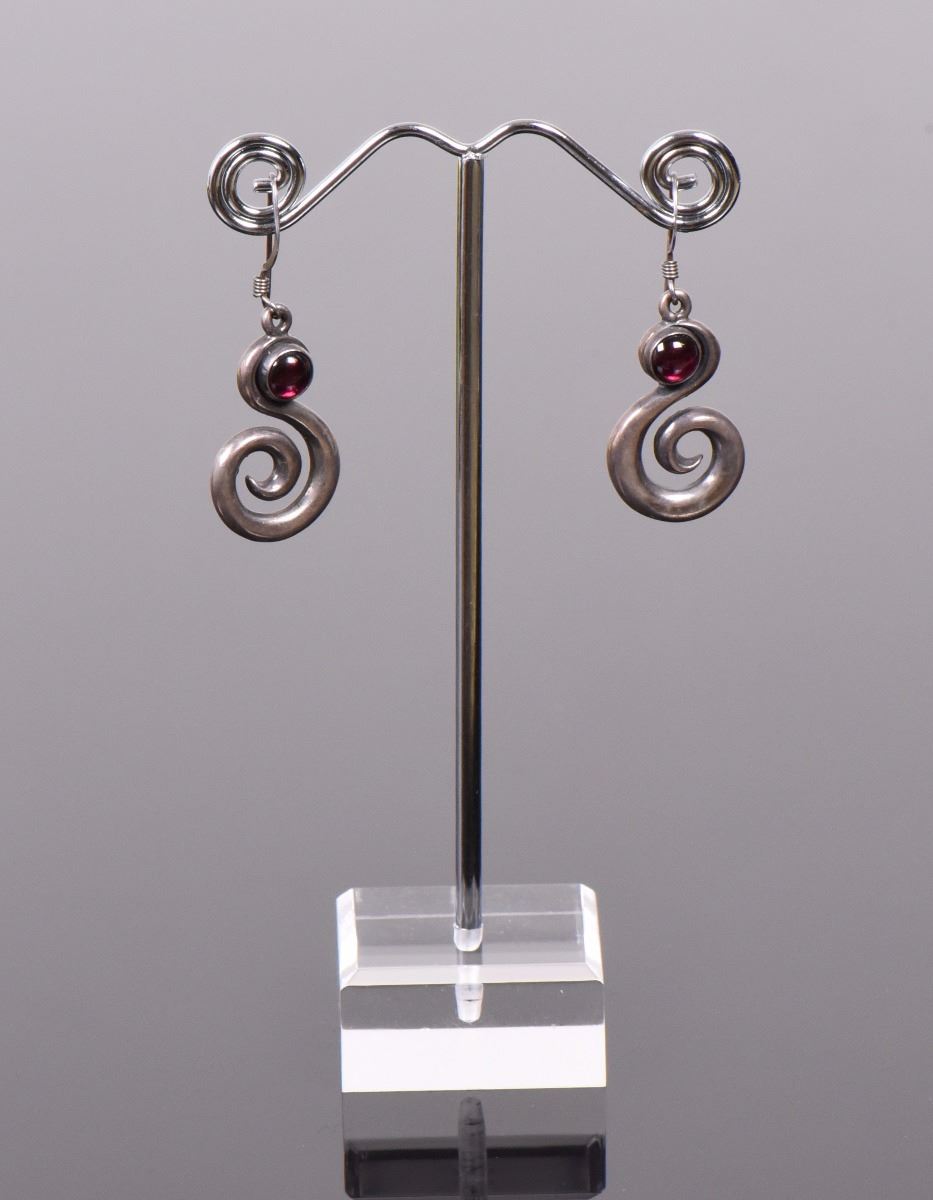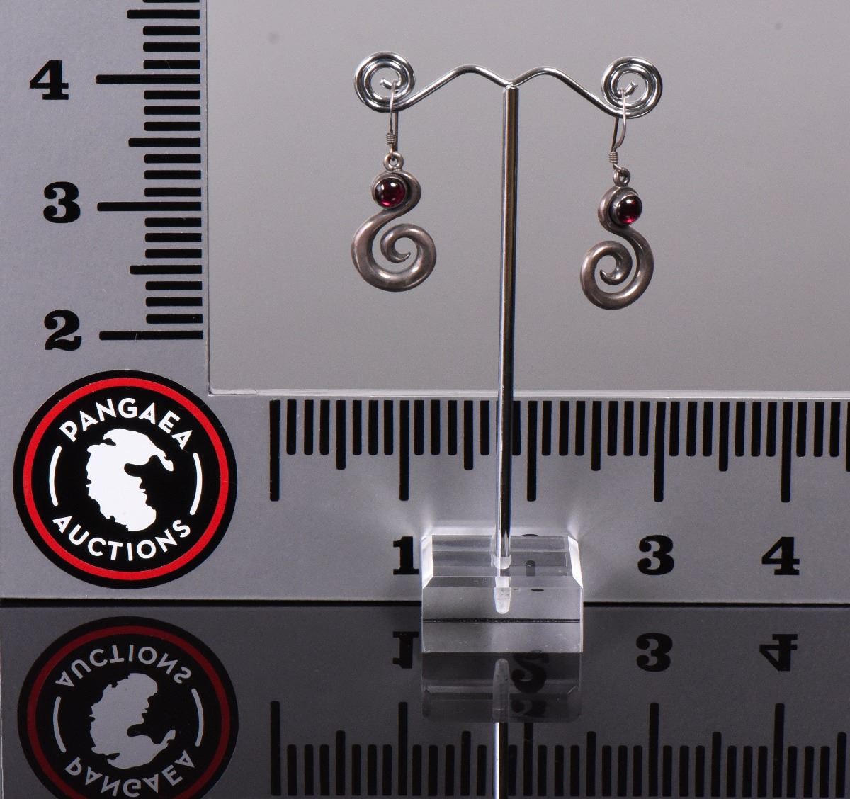 Garnett Sterling Silver Dangling Earrings with W Makers Mark Silver Tested. Base Stand Not Included. Estimated more than 50 yrs old. 925 Sterling Silver consisting of 92.5% silver and 7.5% copper. Tested Positive using Nitric Acid Chemical Scratch Test, Cloth Rub Test, Smell Test, and Magnet Test. Markings of 925 or Sterling stamp. The reason silver needs to be combined with other metals is that it is very difficult to make great designs with just pure silver, which is very soft and malleable. A bit of hardness has to be introduced by adding other metals such as copper. That is why jewelers are capable of making the most intricate an complex designs with 925 Sterling Silver. Silver is one of the most valuable elements next to gold. Mexico is the leading producer of sliver, followed by the United States, Canada, Australia, Spain, Peru, and Russia. Many countries do not require their precious metal items to be stamped and therefore we test to ensure we accurately represent the product. Size: See Ruler Photo. (Photos Represent The Condition Of The Lot.)