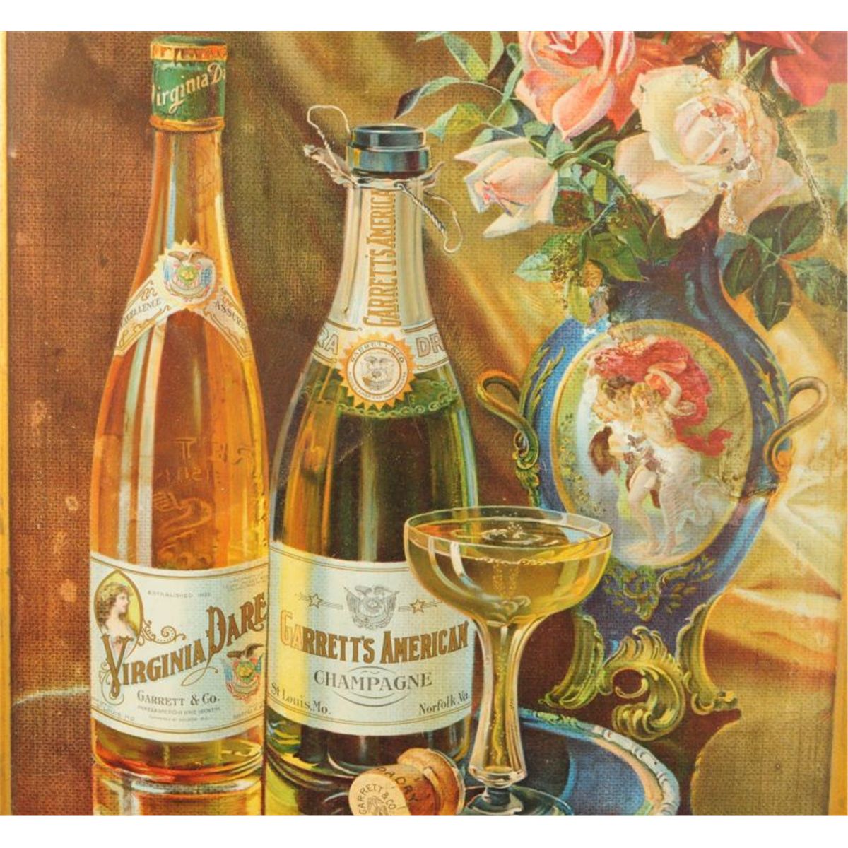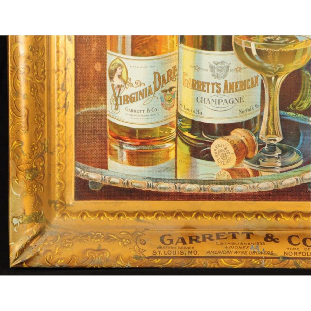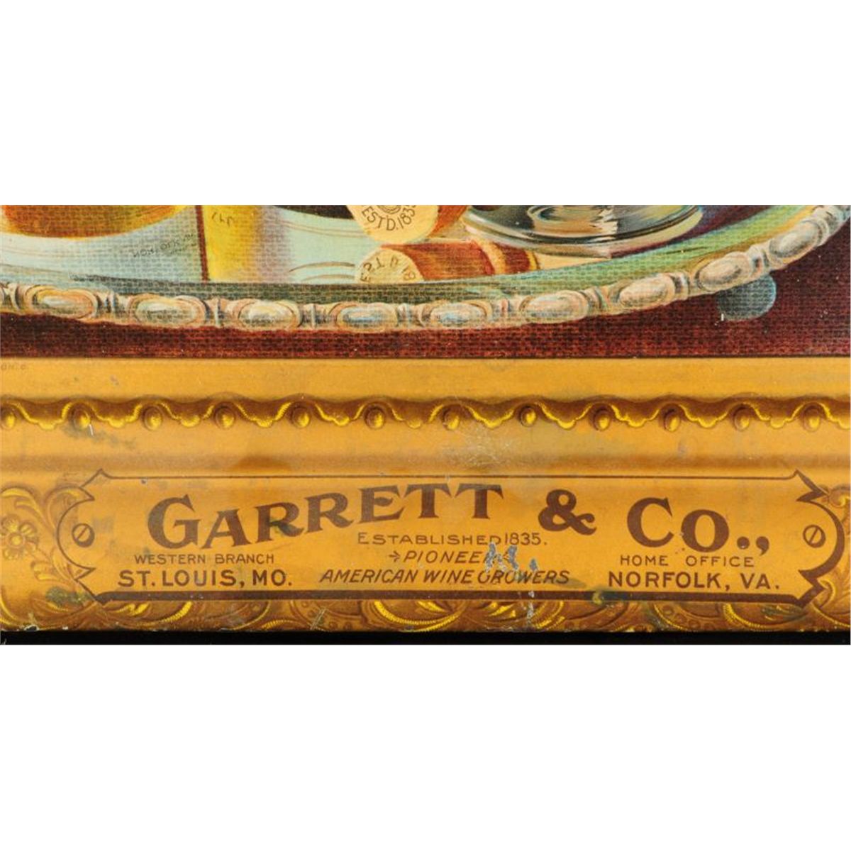 Garrett's Champagne Tin Advertising, Measures 19" x 15"
