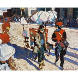 Paintings: Dimensions are given as height first and width second. Inches are rounded off to the nearest eighth and indicate the measure of the painting excluding the frame. Signed and dated indicates that, in our opinion, the piece has been signed and dated by the artist. Any notations such as After, In The Manner Of, Circle Of, Style indicate that the item may have been produced by another hand at a later date. Pictures are framed unless otherwise stated.