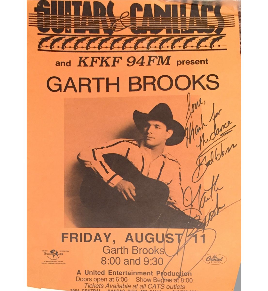 Garth Brooks original signed concert poster inscribed "Thanks for the Dance, God Bless." A great piece of country history!