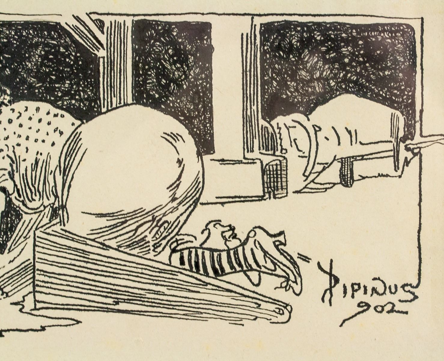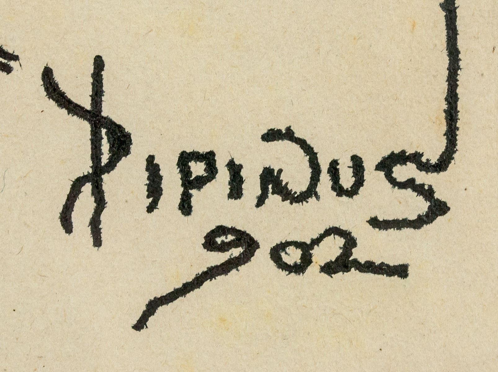 Ink on paper, framed. Featuring a cartoon scene. Signed Pipinus 902 on the lower right corner. Inscribed in pencil on verso GARUTI GIUSEPPE. Also inscribed in pencil 1900 on the lower right corner. 17 x 27 cm (6.7 x 10.6 inches). Frame size: 35.5 x 49.5 cm (14.0 x 19.5 inches). Provenance: This lot carries limited provenance from a Southern Ontario estate