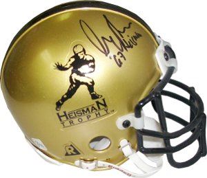 As UCLA quarterback, Gary Beban was named to the all-conference team three times, and led the Bruins to a 24-5-2 record. His school record for total offense lasted 15 years. Gary won the 1967 Heisman Trophy and was unanimously named to the All-America Team, won the Maxwell Trophy (given annually to the college football player judged best in the United States by a committee of college head coaches, sportscasters, sportswriters, and members of the Maxwell Football Club), and was awarded the Washington Touchdown Club Trophy and the 1967 W.J. Voit Memorial Trophy as the outstanding football player on the Pacific Coast. Gary Beban was — and still remains — the only Bruin to win the Heisman. Gary has hand autographed this Gold Heisman Authentic Riddell mini helmet with 67 Heisman Inscription. Certificate of Authenticity from Athlon Sports.