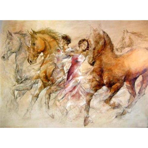 </font></strong>This contemporary English artist?s spontaneity is apparent in the dramatic pencil contours, casual brushstrokes and translucent colors, yet the forms are always classical and graceful and the compositions meticulous. 25?x36? serigraph on paper, signed and numbered by the artist. Domestic shipping $25. International depends upon location.</font>