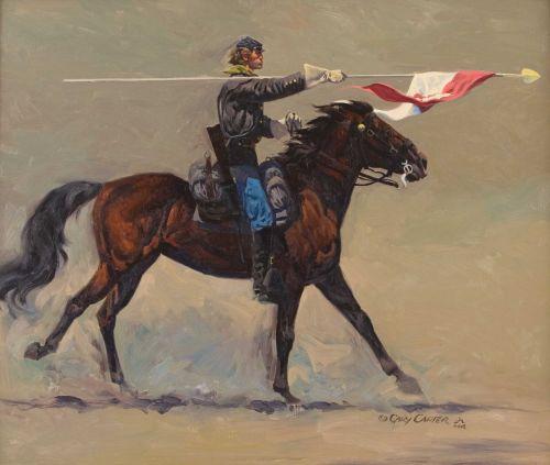 Gary Carter (b. 1939), CA, NWR. 20" x 24". Oil on Board. "Guidon Bearer". (est $3,000-4,000)