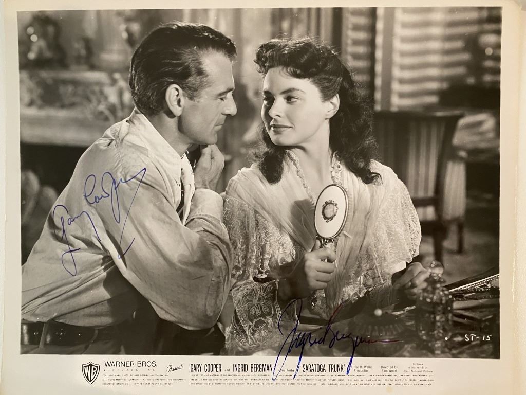Saratoga Trunk signed movie photo autographed by Gary Cooper and Ingrid Bergman. 8x10 inches